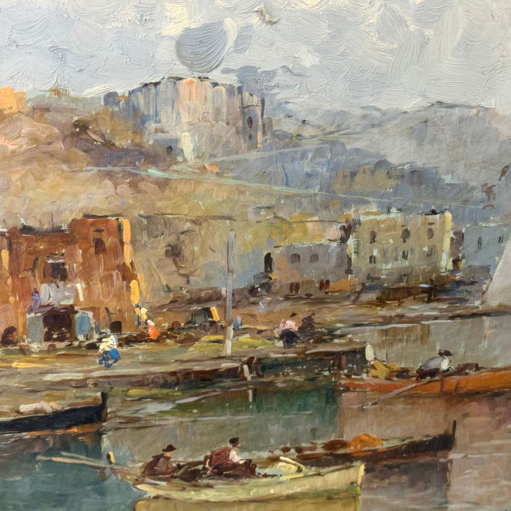 Dipinto olio su pannello, periodo XX secolo scuola Italiana, raffigurante Marina. Dimensioni interno cornice: 80x60 cm. Dimensioni compreso cornice: 92x72 cm. Firmato in basso a sinistra da A. Madonna. Opera in ottime condizioni e di eccellente qualità artistica.