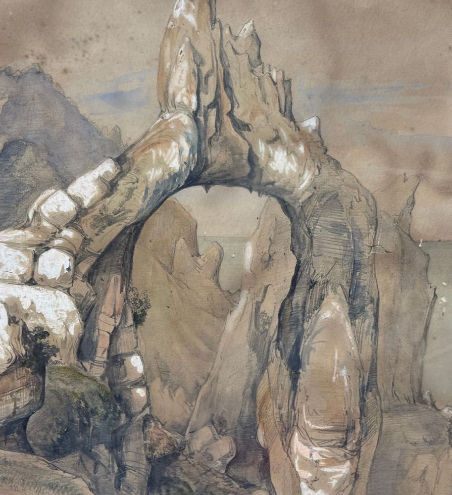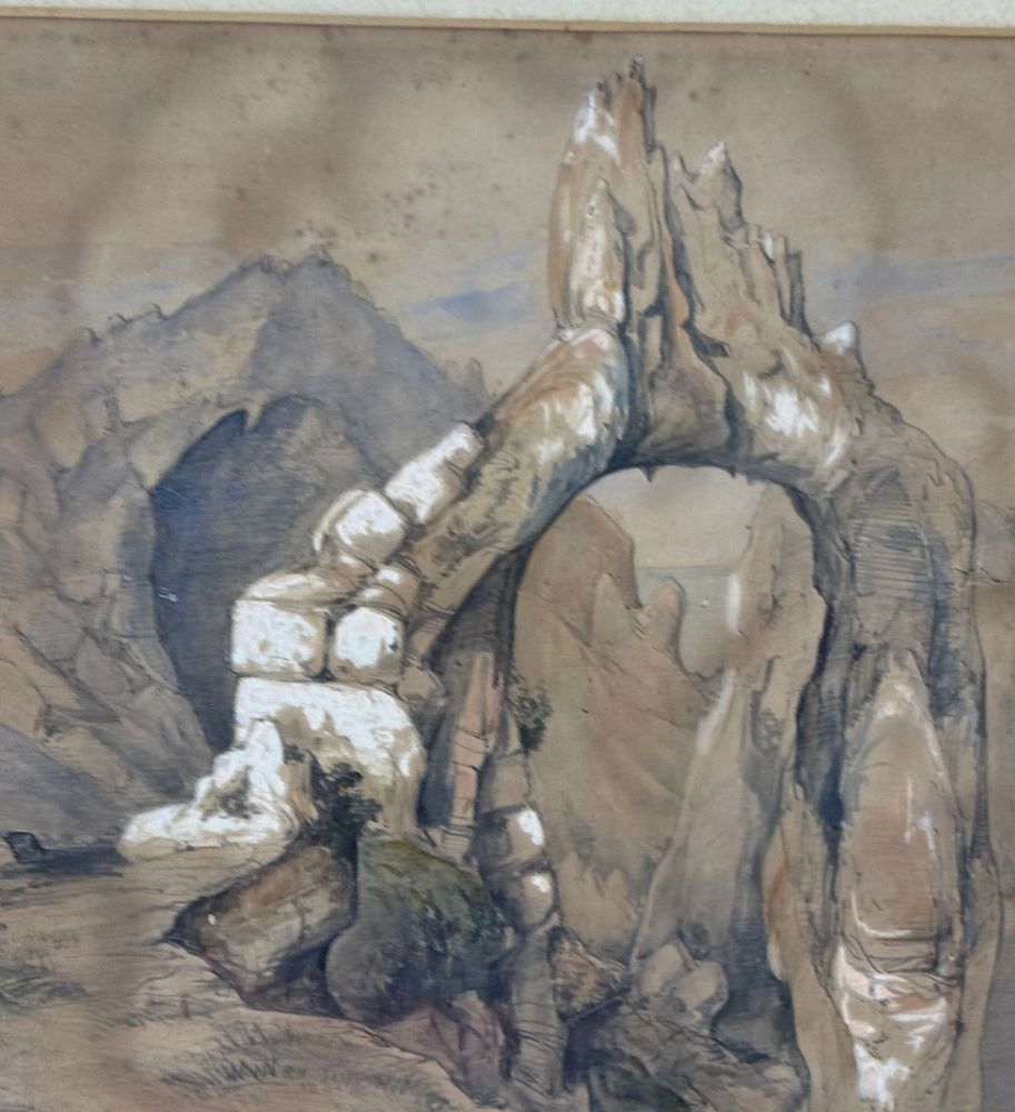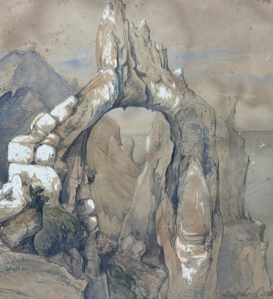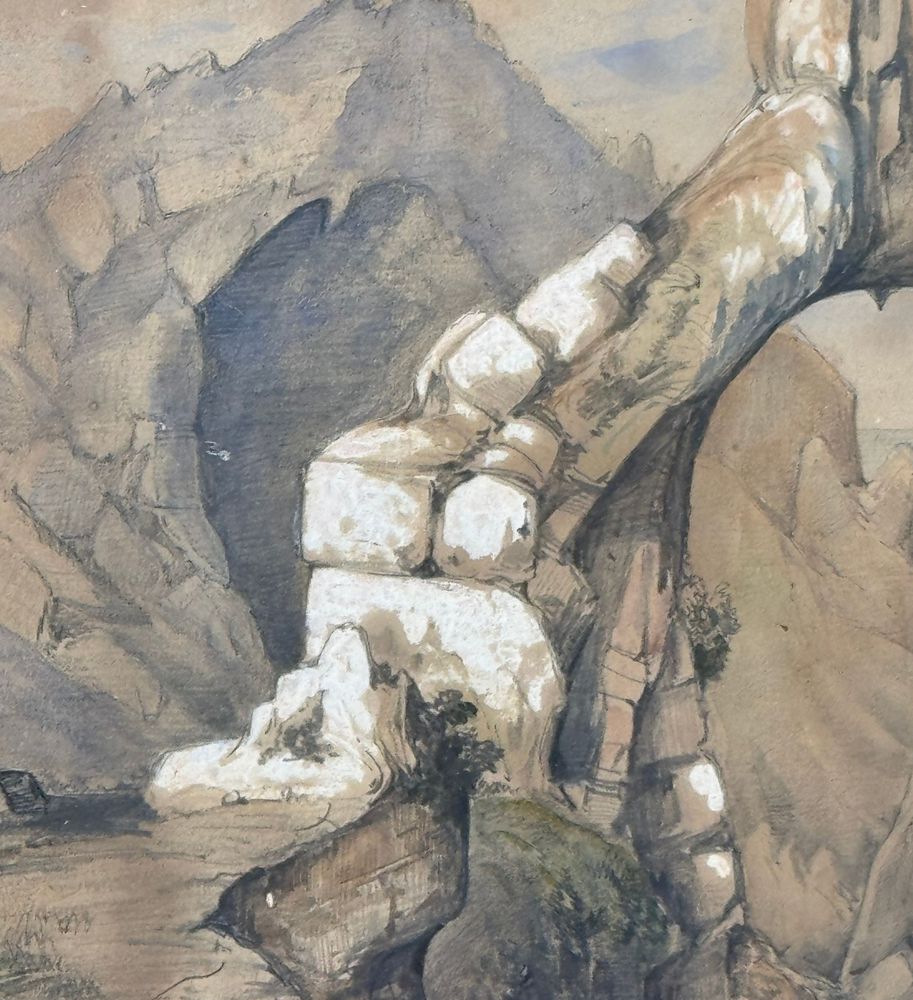 Dipinto acquerello su carta, periodo XIX secolo scuola Italiana, raffigurante Paesaggio roccioso. Dimensioni compreso cornice: 67x57 cm. Dimensioni interno cornice: 35x26 cm. Reca firma Consalvo Carelli in basso a destra. Opera in buone condizioni con lievi segni di vissuto come da foto allegate.