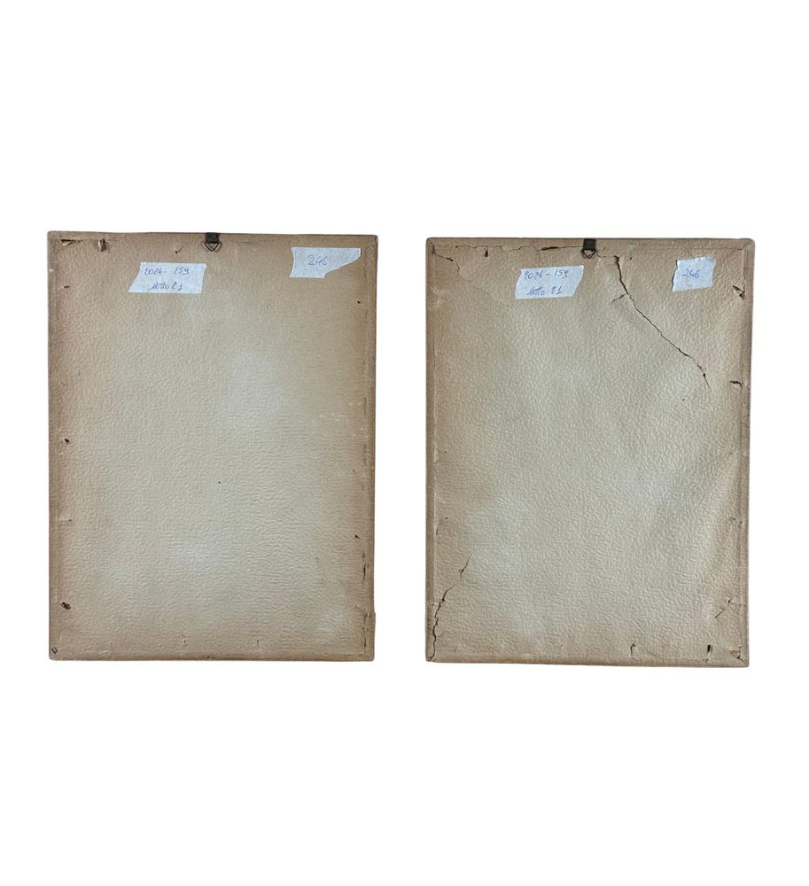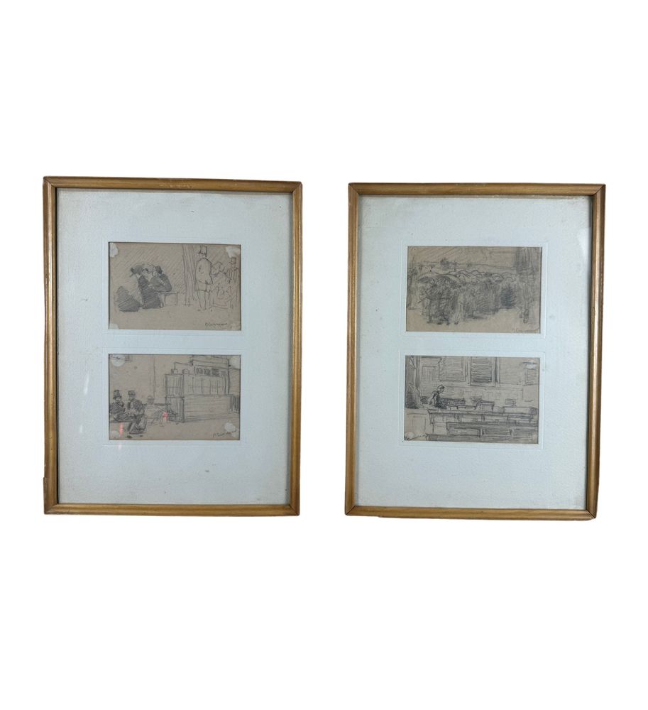 Quattro disegni pastello su carta, periodo XIX/XX secolo scuola Italiana, raffiguranti Varie raffigurazioni. Dimensioni compreso cornice: 37x27,5 cm catauno. Dimensioni interno cornice: 10x14 cm catauno. Reca firma M. Cammarano. Opere in buone condizioni.