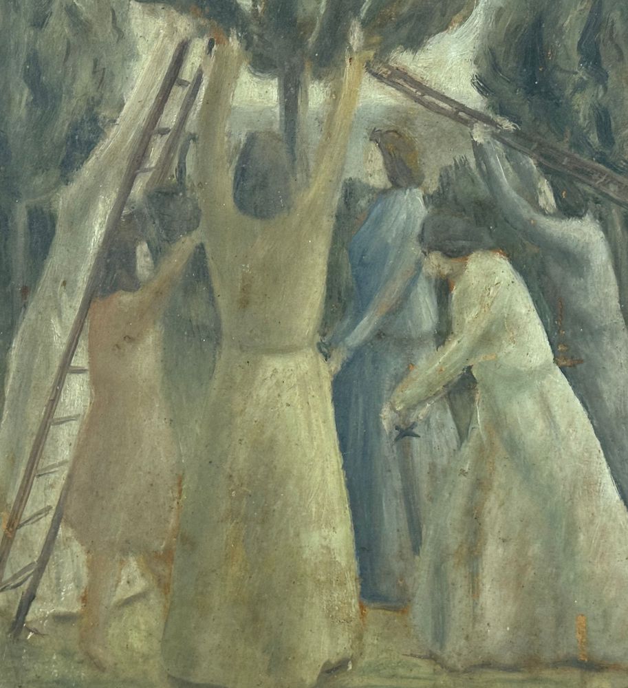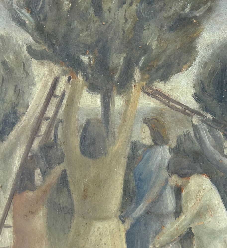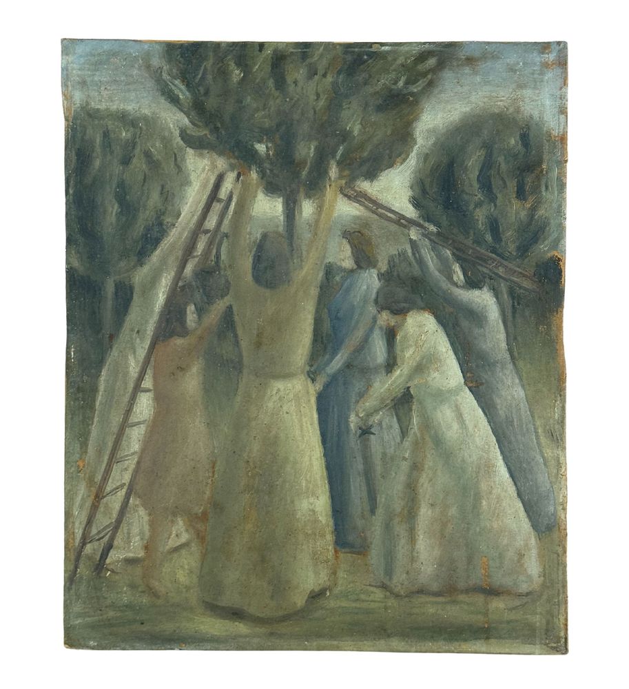 Dipinto olio su pannello, periodo XX secolo scuola Italiana, raffigurante Donna nei campi. Dimensioni: 35x42 cm. Da artista anonimo. Opera in buone condizioni con lievi segni di vissuto come da foto allegate.