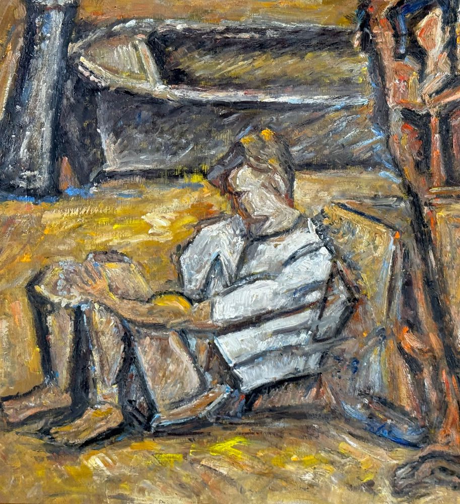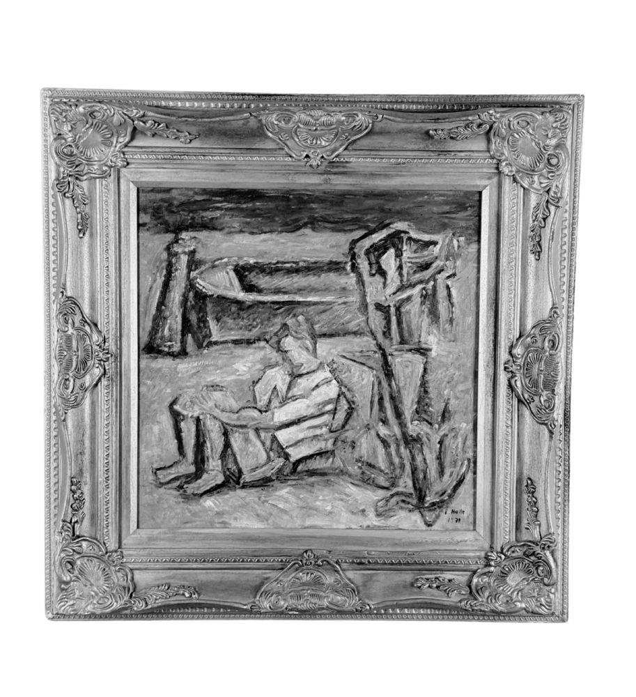 Dipinto olio su tavola, periodo XX secolo scuola Italiana, raffigurante Personaggio su marina. Dimensioni compreso cornice: 60x60 cm. Dimensioni interno cornice: 40x40 cm. Reca firma in basso a destra da "E. Notte". Opera in buone condizioni.