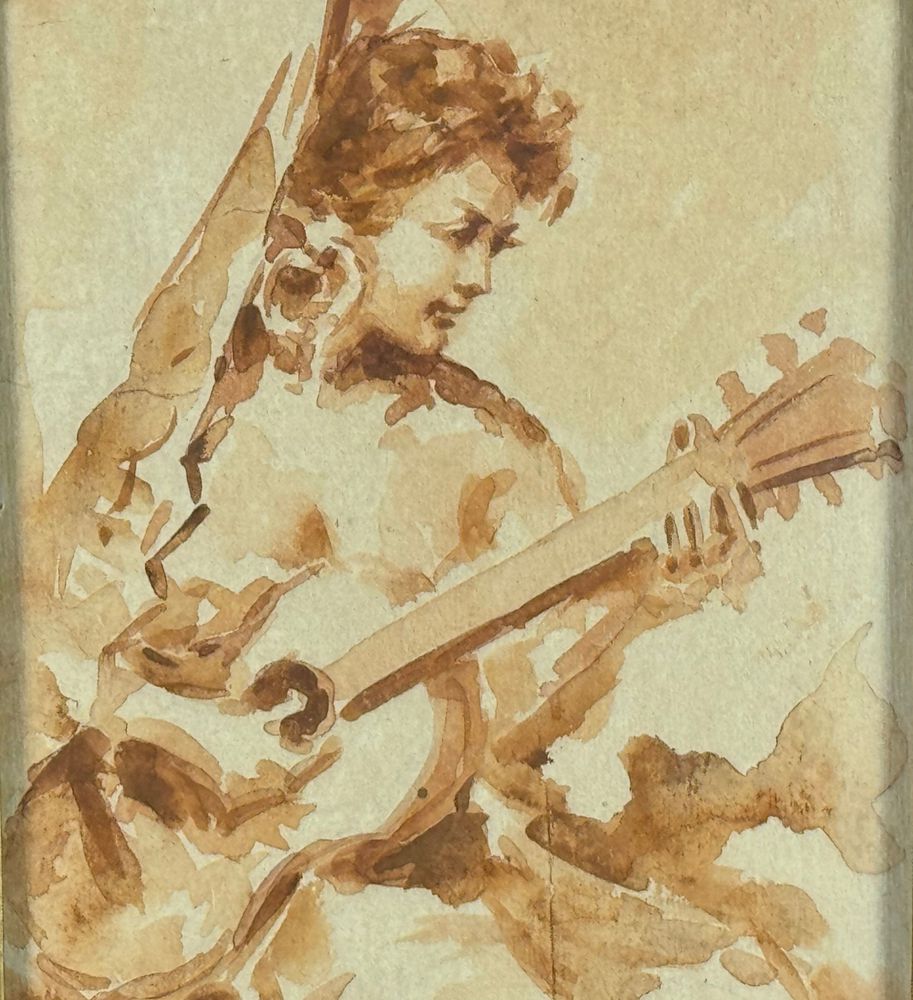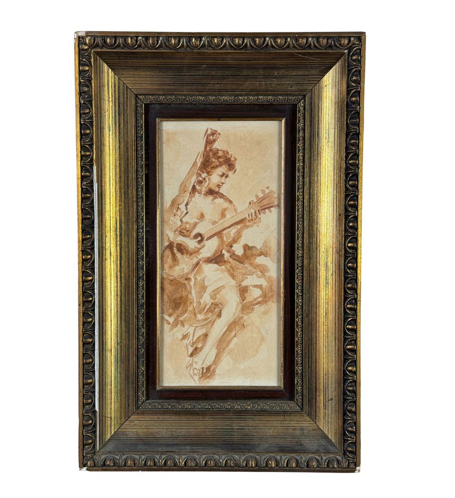 Acquerello su carta, periodo XX secolo scuola Italiana, raffigurante Donna con chitarra. Dimensioni compreso cornice: 48x31 cm. Dimensioni interno cornice: 19x35 cm. Da artista anonimo. Opera in buone condizioni.