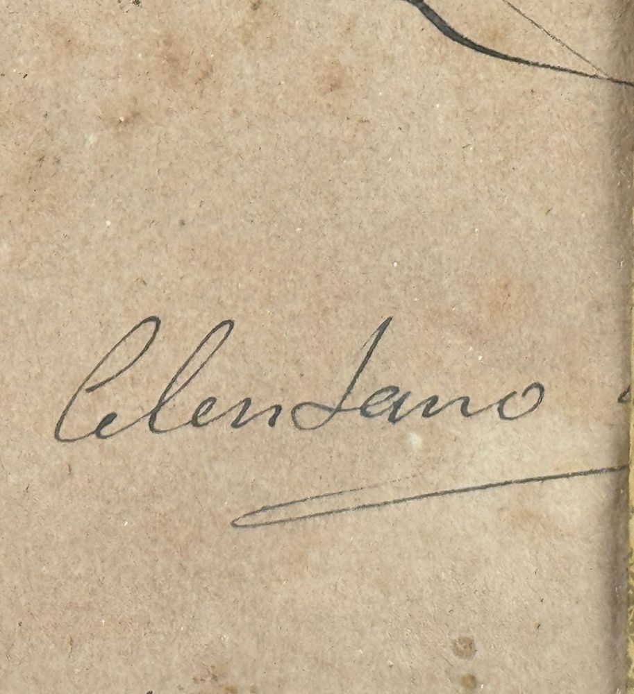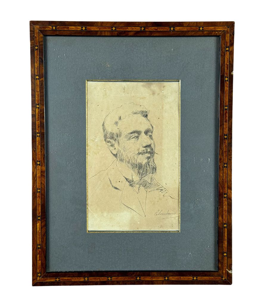 Disegno su carta, periodo XX secolo scuola Italiana, raffigurante Ritratto di uomo. Dimensioni compreso cornice: 29x37 cm. Dimensioni interno cornice: 14x22 cm. Reca firma in basso a destra da Celentano. Opera in buone condizioni.