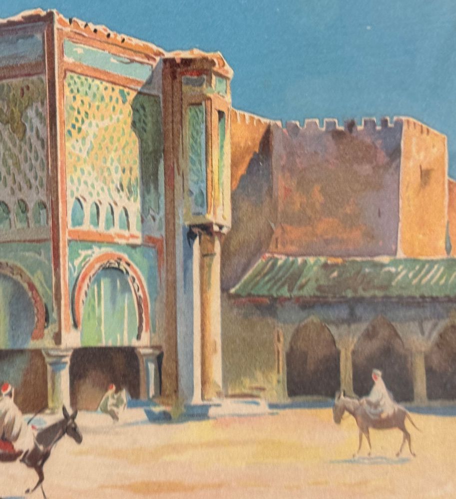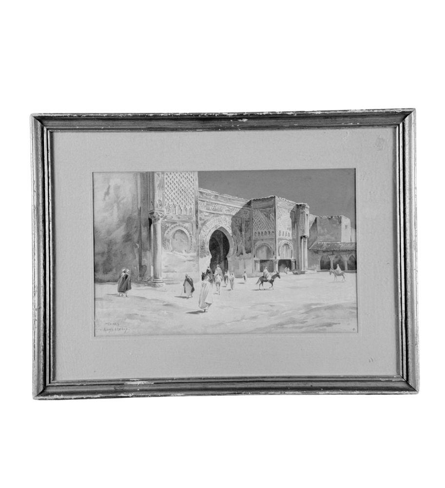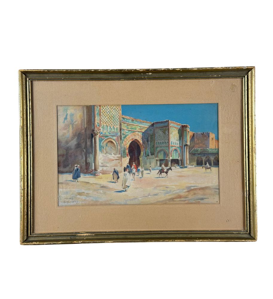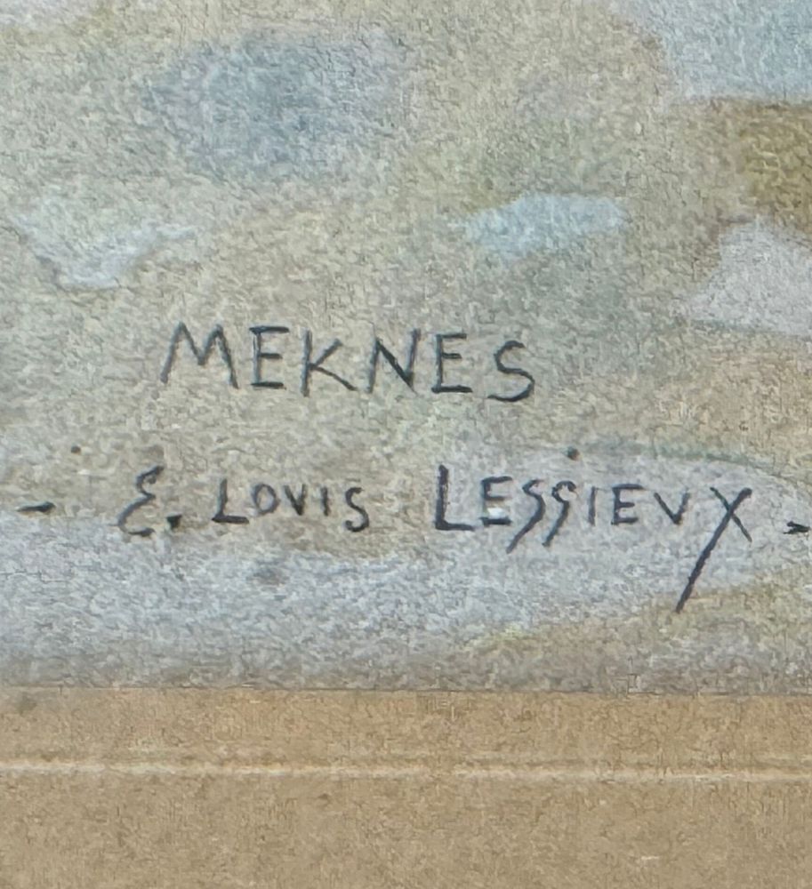 Acquerello su carta, periodo XIX/XX secolo scuola Europea, raffigurante Meknes Città in Marocco. Dimensioni compreso cornice: 35x47 cm. Dimensioni interno cornice: 33x21 cm. Reca firma in basso a sinistra da Ernest Louis Lessieux . Opera in buone condizioni.