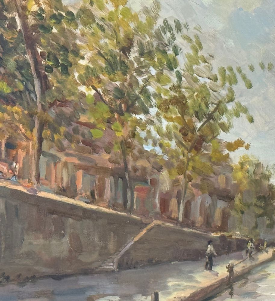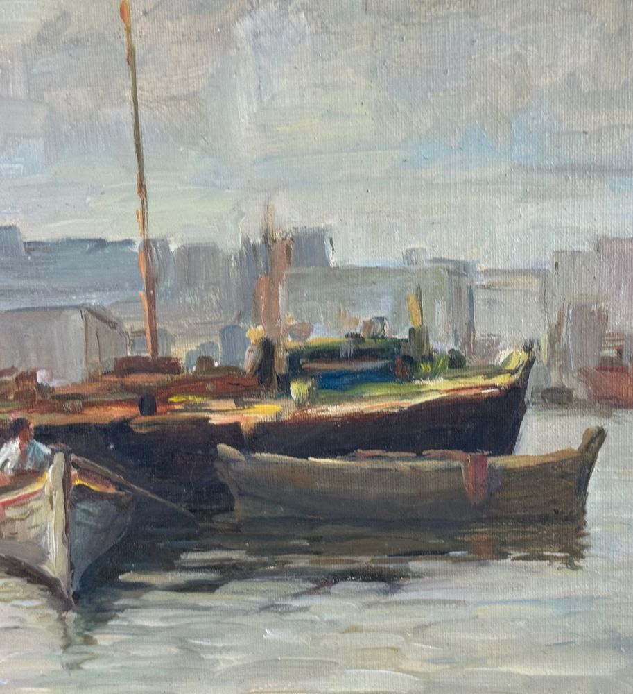Dipinto olio su tela, periodo XX secolo scuola Italiana, raffigurante Scorcio di marina con barche. Dimensioni compreso cornice: 70x54 cm. Dimensioni interno cornice: 40x50 cm. Reca firma in basso a destra da artista non identificato. Opera in buone condizioni.