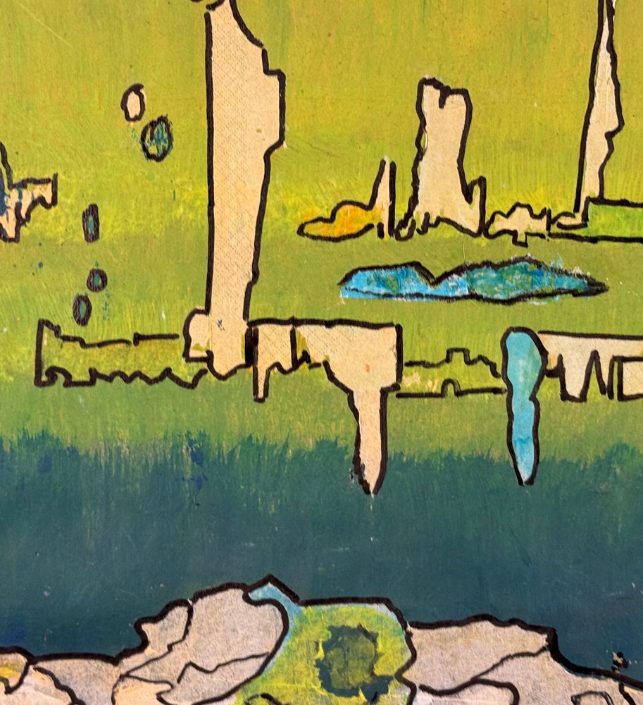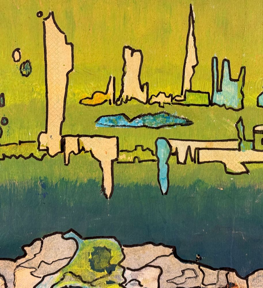 Acrilico su cartoncino, periodo XX secolo scuola Italiana, raffigurante Mappa Dubai. Dimensioni: 50x35 cm. Reca firma e data in basso a destra da Alighiero Boetti. Opera in buone condizioni.