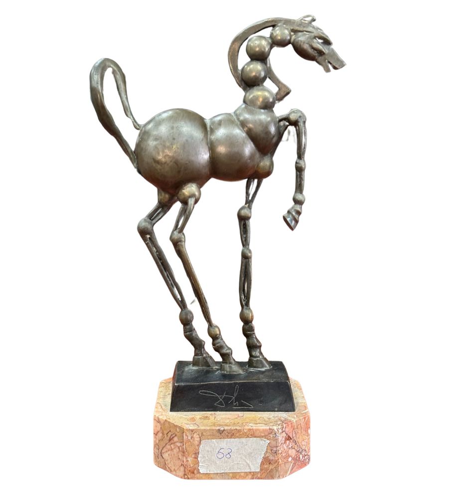 Scultura in bronzo periodo XX secolo, dal modello di Dalí, raffigurante Cavallo. Dimensioni su base in marmo: 34x20x12 cm. Scultura in ottime condizioni.