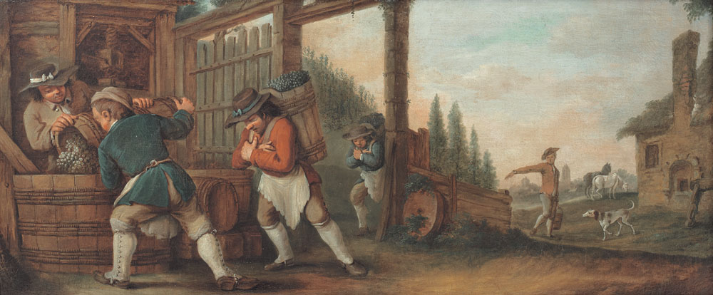 PITTORE DEL XVIII SECOLO La vendemmiaOlio su tela, cm 58,5x138,5.