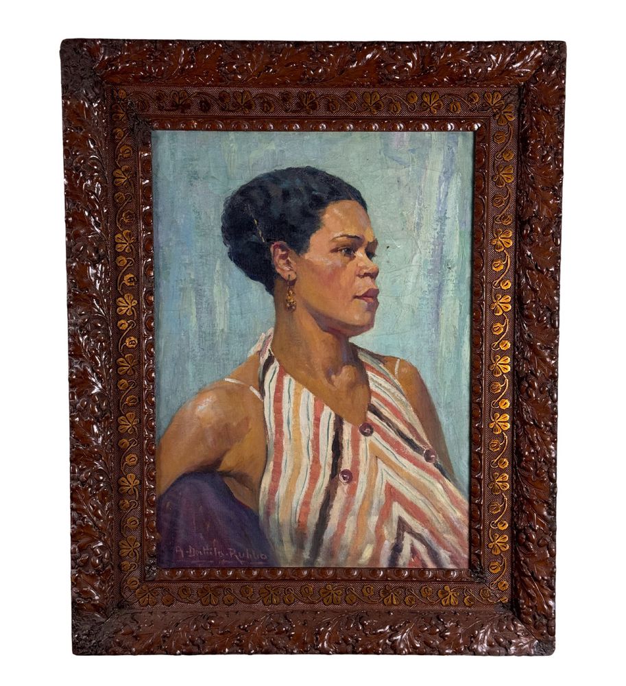 Dipinto olio su tela, periodo XIX/XX secolo scuola Italiana, raffigurante Ritratto di donna. Dimensioni compreso cornice: 59x74 cm. Dimensioni interno cornice: 41x56 cm. Reca firma in basso a sinistra da artista non identificato. Opera in buone condizioni.