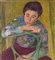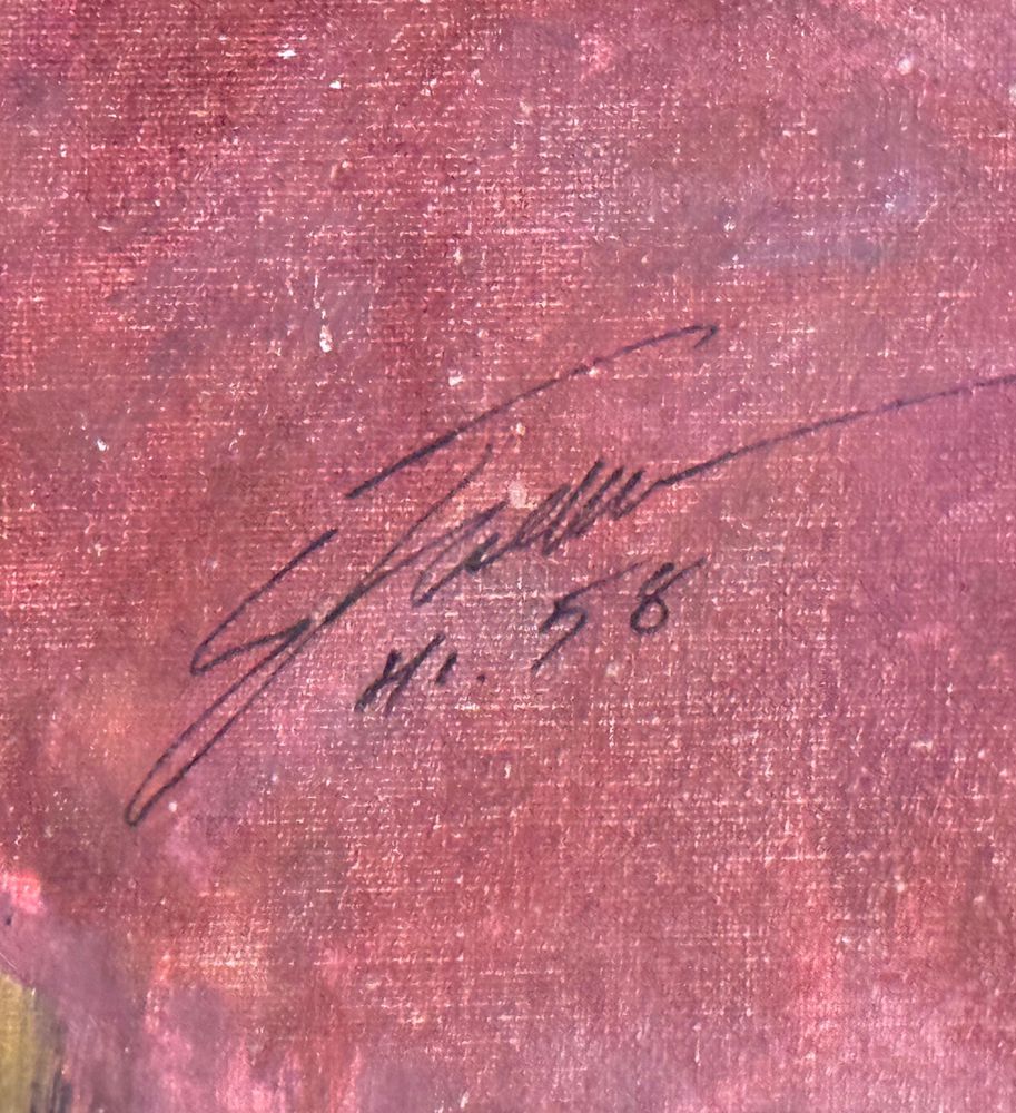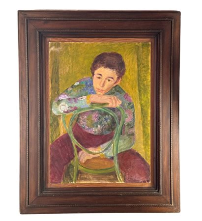 Dipinto olio su pannello, periodo XX secolo scuola Italiana, raffigurante Ritratto di giovane. Dimensioni compreso cornice: 80x100 cm. Dimensioni interno cornice: 50x70 cm. Reca firma in basso a destra e autentica sul retro da artista non identificata. Opera in buone condizioni.