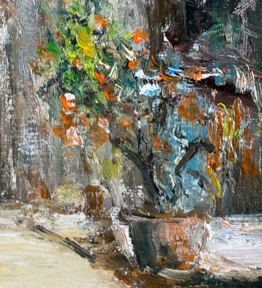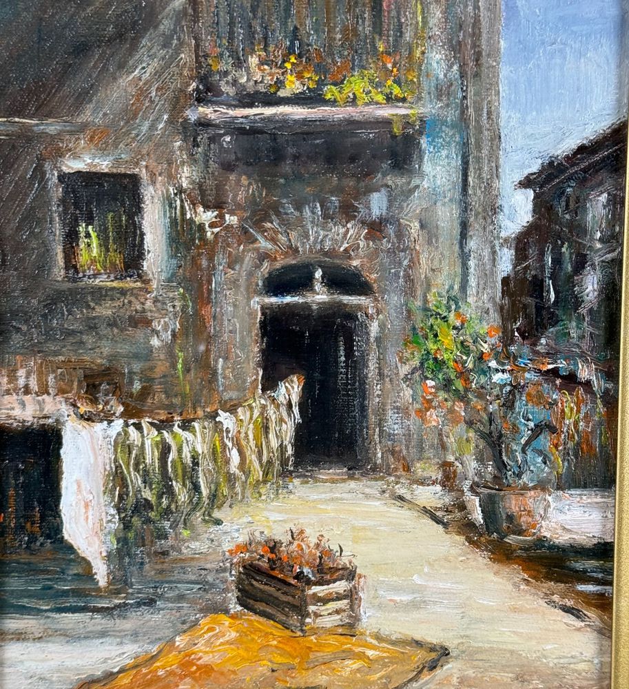 Dipinto olio su tavola, periodo XX secolo scuola Italiana, raffigurante Scorcio di borgo. Dimensioni compreso cornice: 48x44 cm. Dimensioni interno cornice: 20x25 cm. Reca firma in basso a destra da R. Morelli. Opera in buone condizioni.
