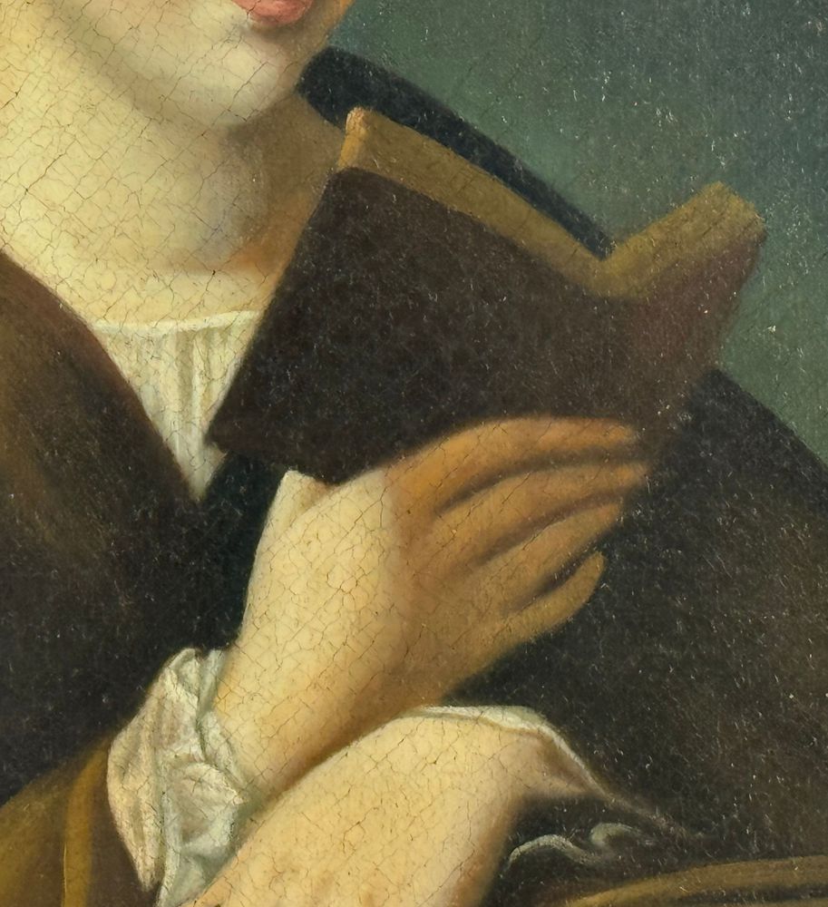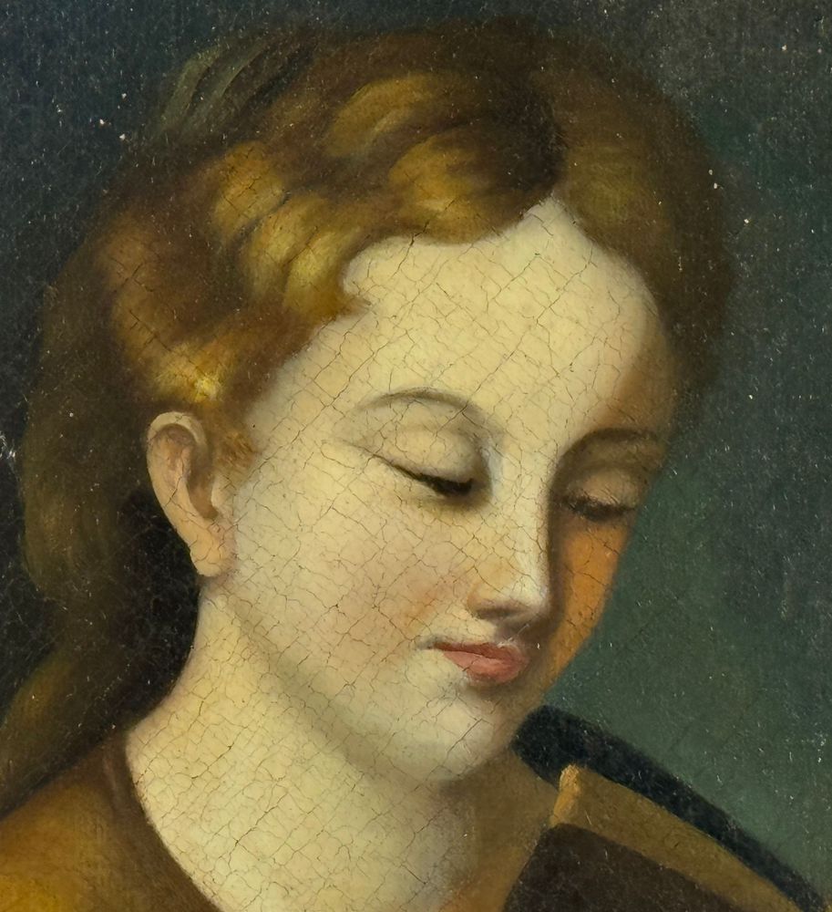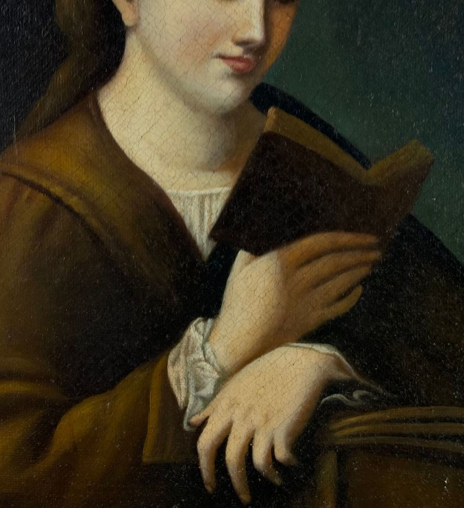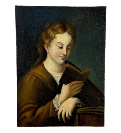 Dipinto olio su tela, periodo XIX/XX secolo scuola Italiana accademico, raffigurante Ritratto di donna mentre legge. Probabile copia d'autore. Dimensioni: 40x54 cm. Da artista anonimo. Opera in buone condizioni.