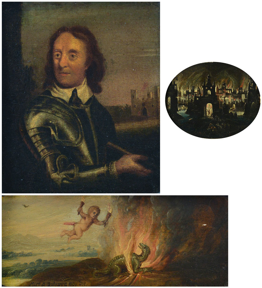 PITTORE DEL XVII SECOLO Notturno con incendio di Troia Olio su rame ovale, cm...