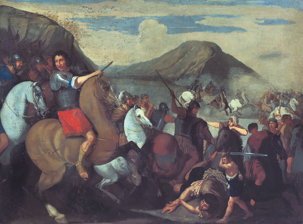 FALCONE ANIELLO Napoli 1607 - 1656(maniera di)Scena di battagliaOlio su tela,...