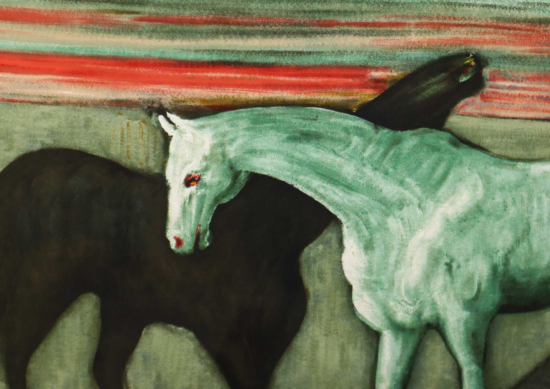 Domenico Purificato (Fondi 1915-Roma 1984) - Cavalli 82X75,5 in cornice 104X56,5 serigrafia su seta a 15 colori