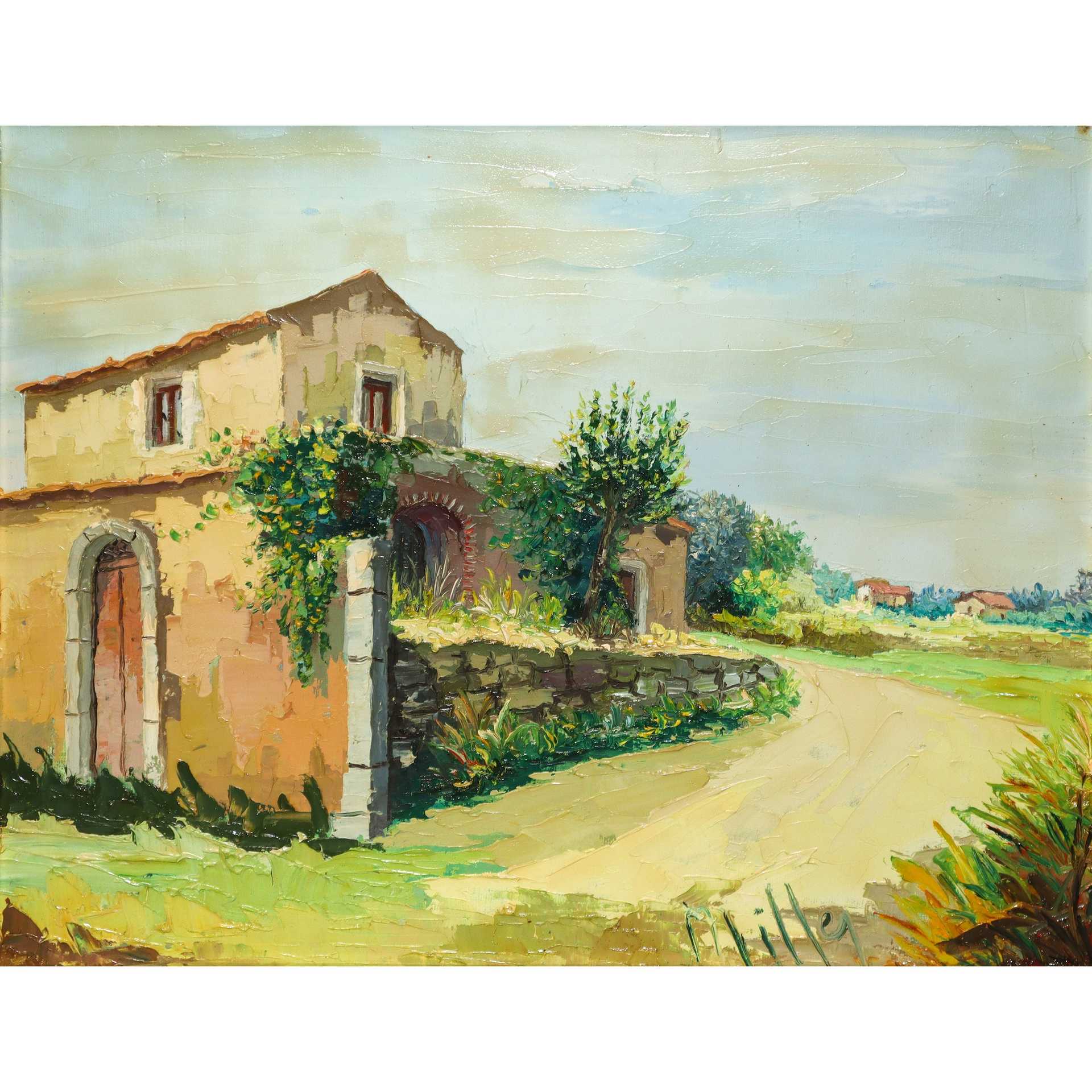 Strada di campagna con case cm 40X50, in cornice 58X68 Olio su tela