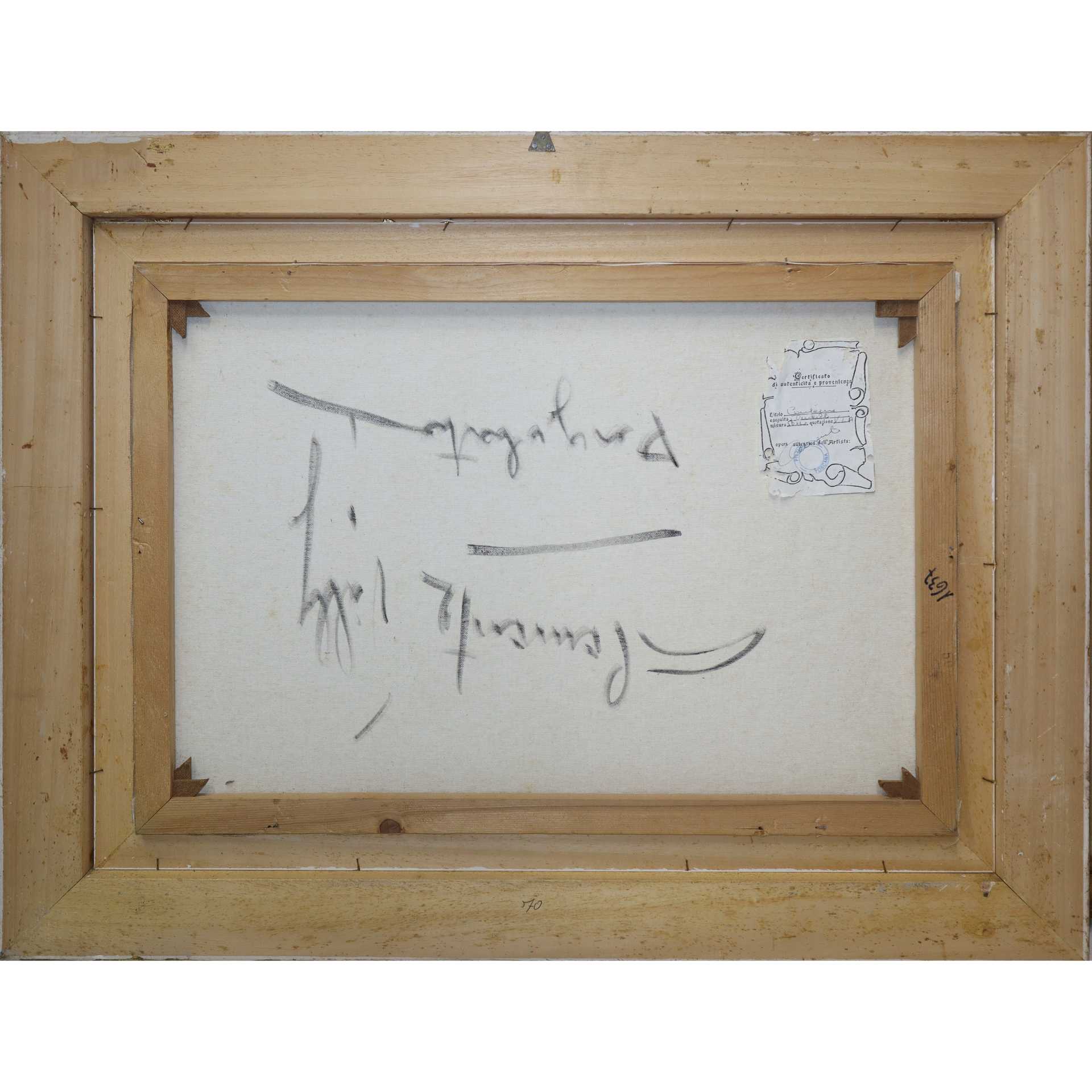 Willy Clemente (1923-1999) - Pergolato cm 50 x 70, in cornice 74 x 94 Olio su tela Paesaggio campestre con personaggi. Firmato in basso a destra e sul retro Clemente