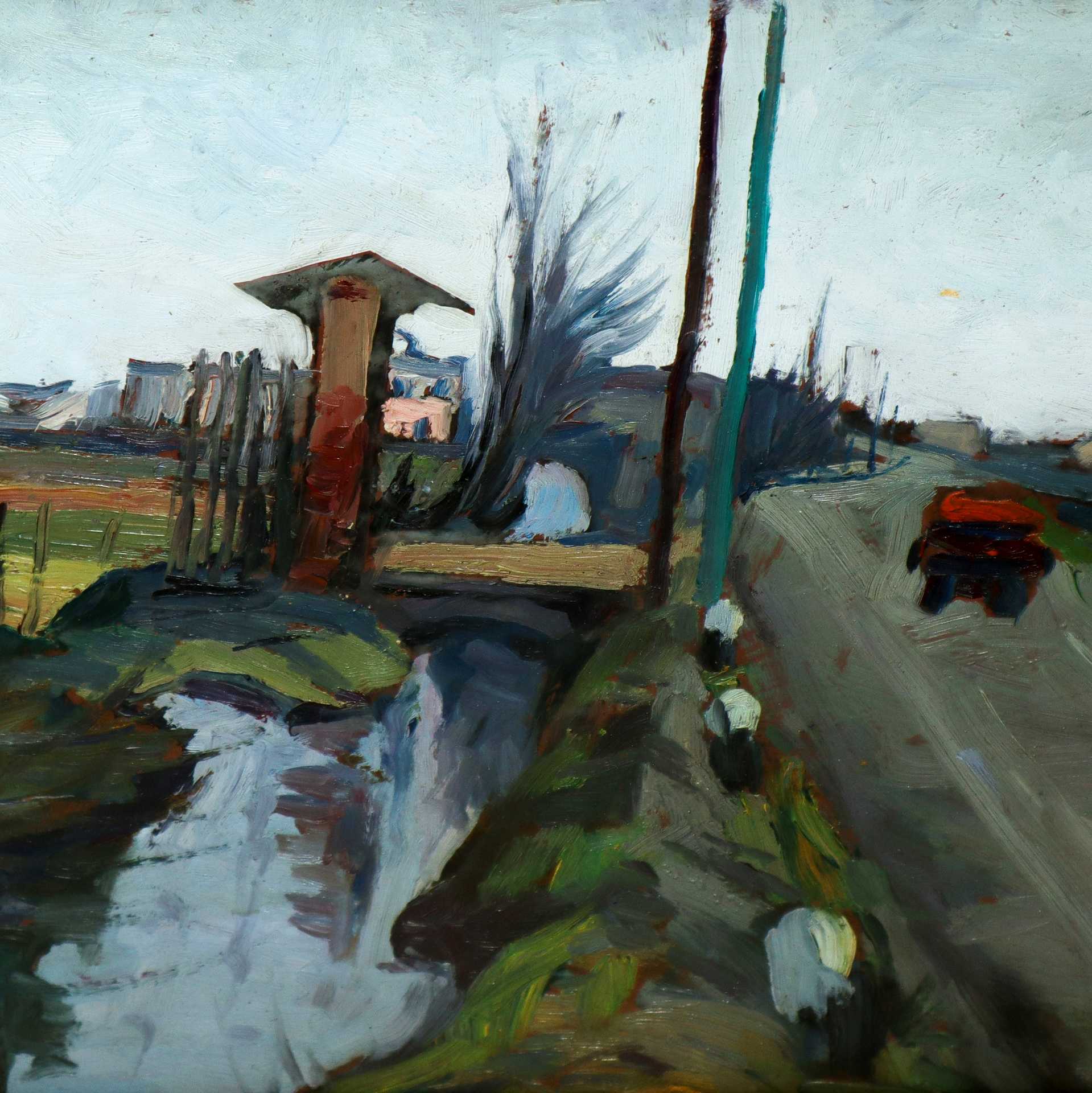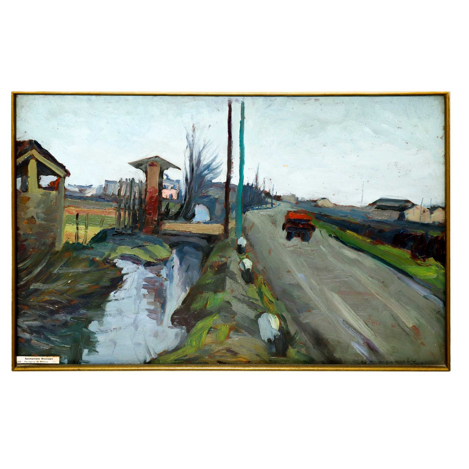Giuseppe Spampinato (1901) - Periferia di Milano h cm 29,5X40 in cornice h cm 43X52 olio su masonite