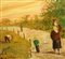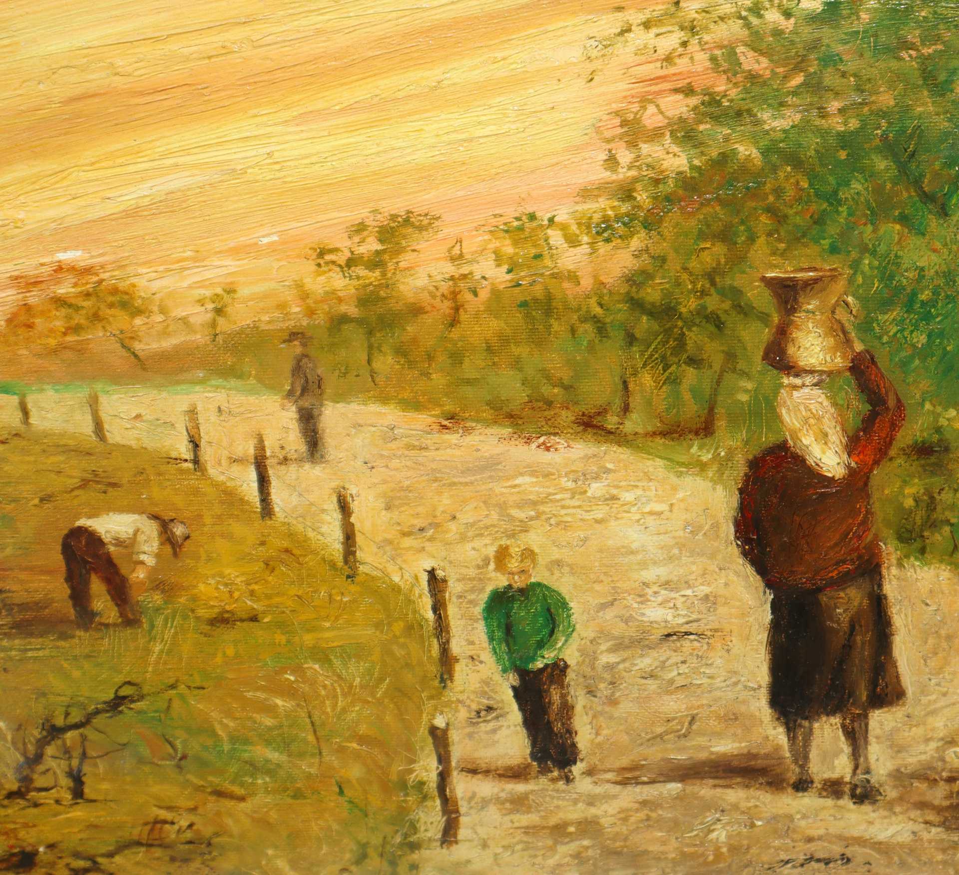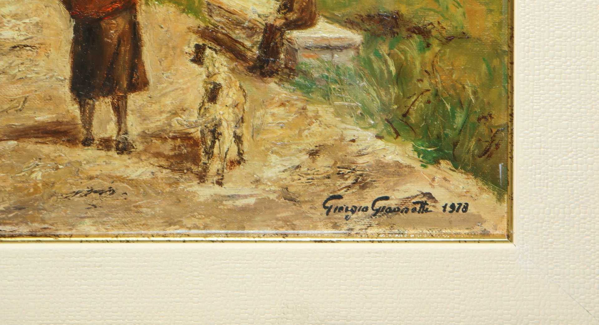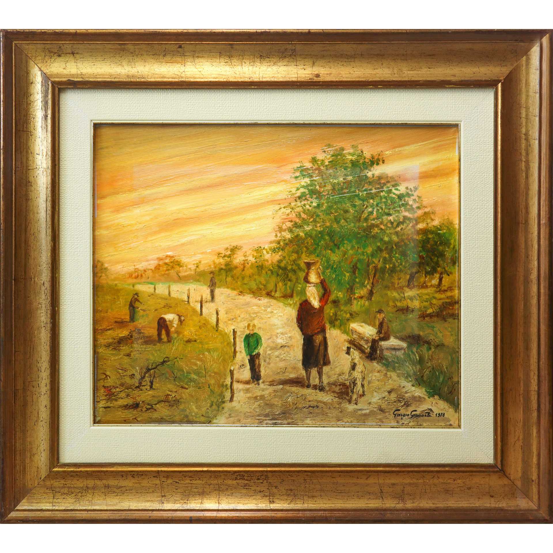 Paesaggio agreste con personaggi, 1978 h cm 40X50 in cornice 68X78 Firmato e datato 1978 in basso a destra Firmato e datato 1978 in basso a destra