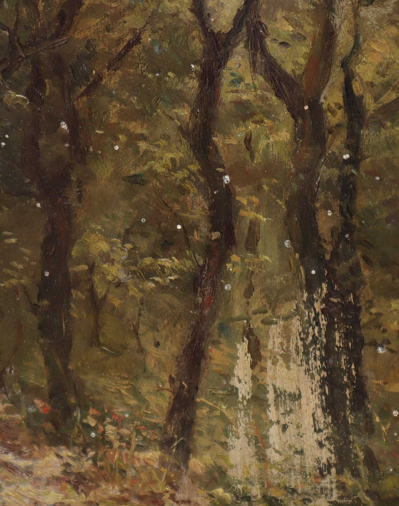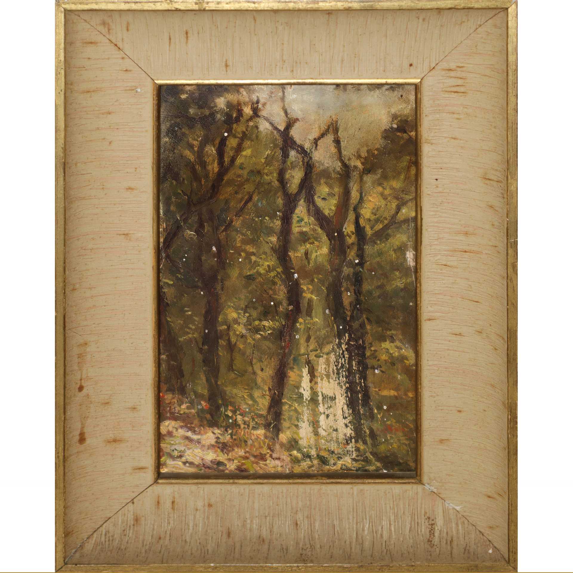 Alberi, Late 19° century 23x15 in cornice 32x24 Olio su tavoletta Firmato in basso a destar