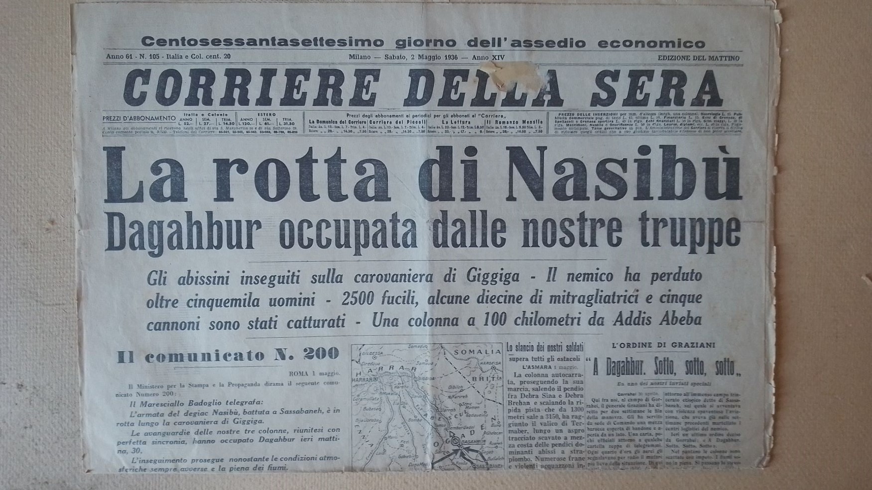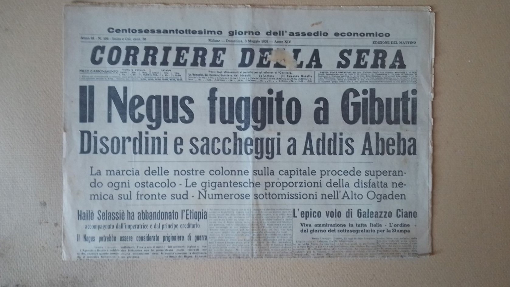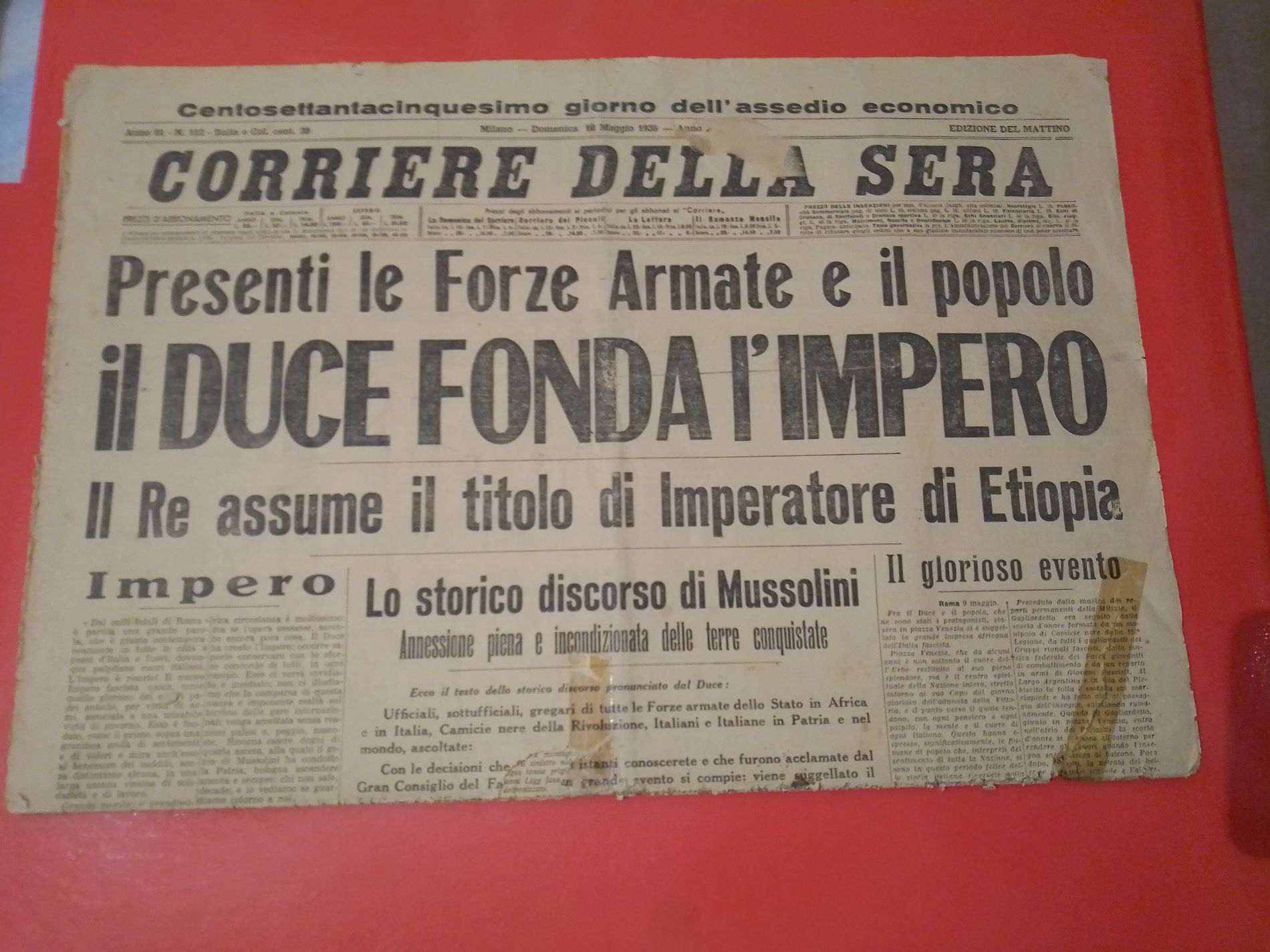OK-APULEIO DA LIPARI (1948) Raro Corriere della Sera tre Pagine Originali 10 Maggio 1938 CM 58X43 Titolo -Il Duce Fonda L'Impero, Lo Storico Discorso di Mussolini- Intervento con Francobolli Usati 1852 Parma 5 Centesimi -1851Toscana 2 Crazie. - Corriere della Sera Maggio 1936 La Rotta di Nasibu' ,Tre Pagine Originali - Corriere della Sera 3 Maggio 1936 -Il Negus Fuggito a Gibuti- Tre Pagine Originali