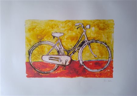 MARIO SCHIFANO (1934-1998) Litografia a 14 Colori CM 70X50, Carta Pregiata Magnani Pescia Titolo -Bicicletta Vintage- Firma e Tiratura a Matita al Fronte e Timbro a Secco, al Retro N. Serie della Fondazione Schifano