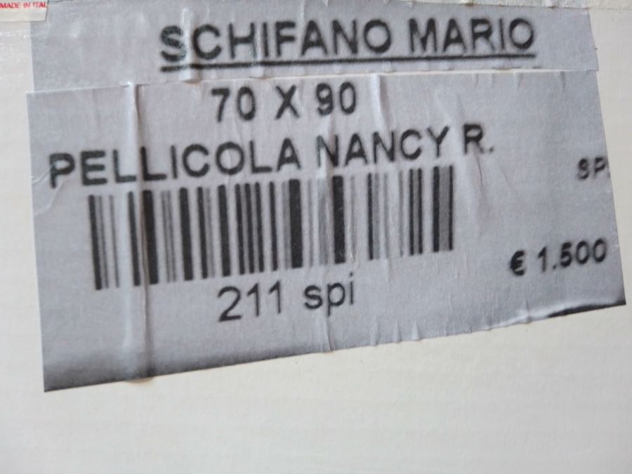 MARIO SCHIFANO (1934-1988) Intervento su Grande Pellicola Trasparente , Titolo -Intitolato Nancy R.- CM 87X70 Firma al Fronte a Pennarello in Basso a Destra e Tiratura a Sinistra, Copia 227 di 500, Titolo al Fronte e Valutazione al Retro Senza Cornice, Con Certificato.