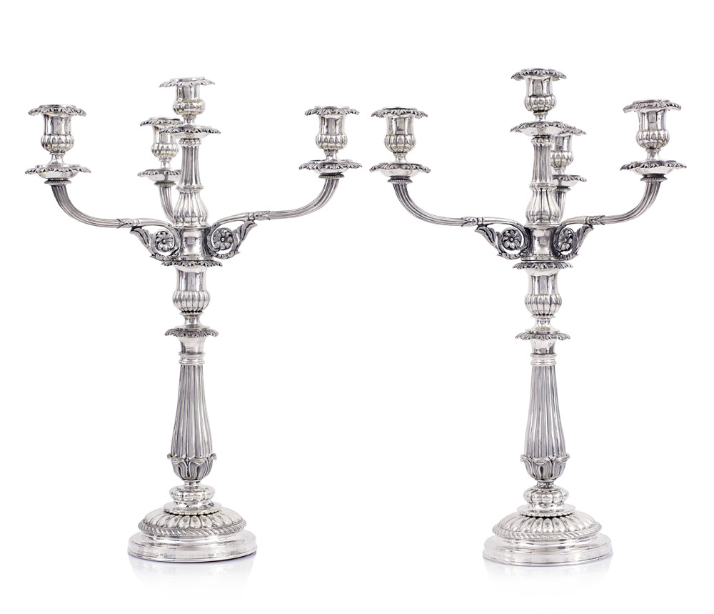 ARGENTI D'EPOCA COPPIA DI CANDELABRI IN ARGENTO, MILANO, 1820 CA., ARGENTIERE...