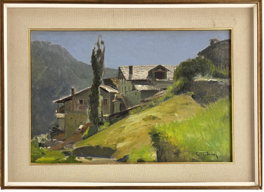 Cesare Tubino Genova 1899 - 1990 Torino Paesaggio Montano Olio su cartone tela cm 40x60 firmato in basso a dx