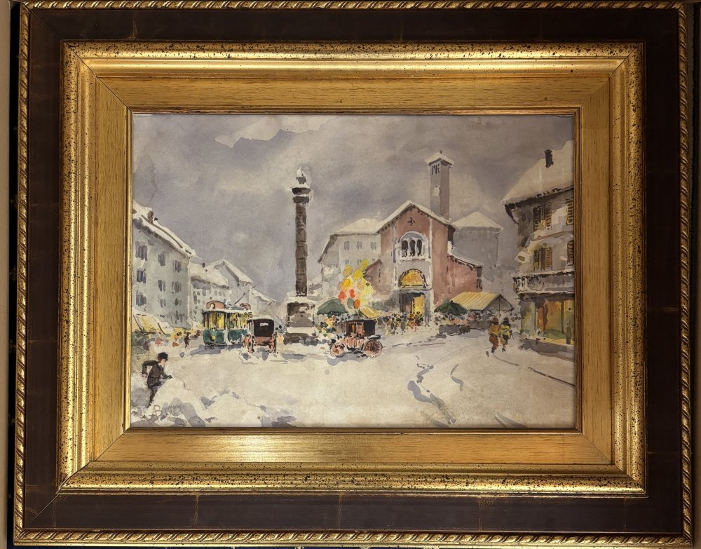 Siglato AB Italia XIX - XX secolo Piazza di San Babila, Milano Acquarello su carta cm 36x50 siglato in basso a sx datato 1943