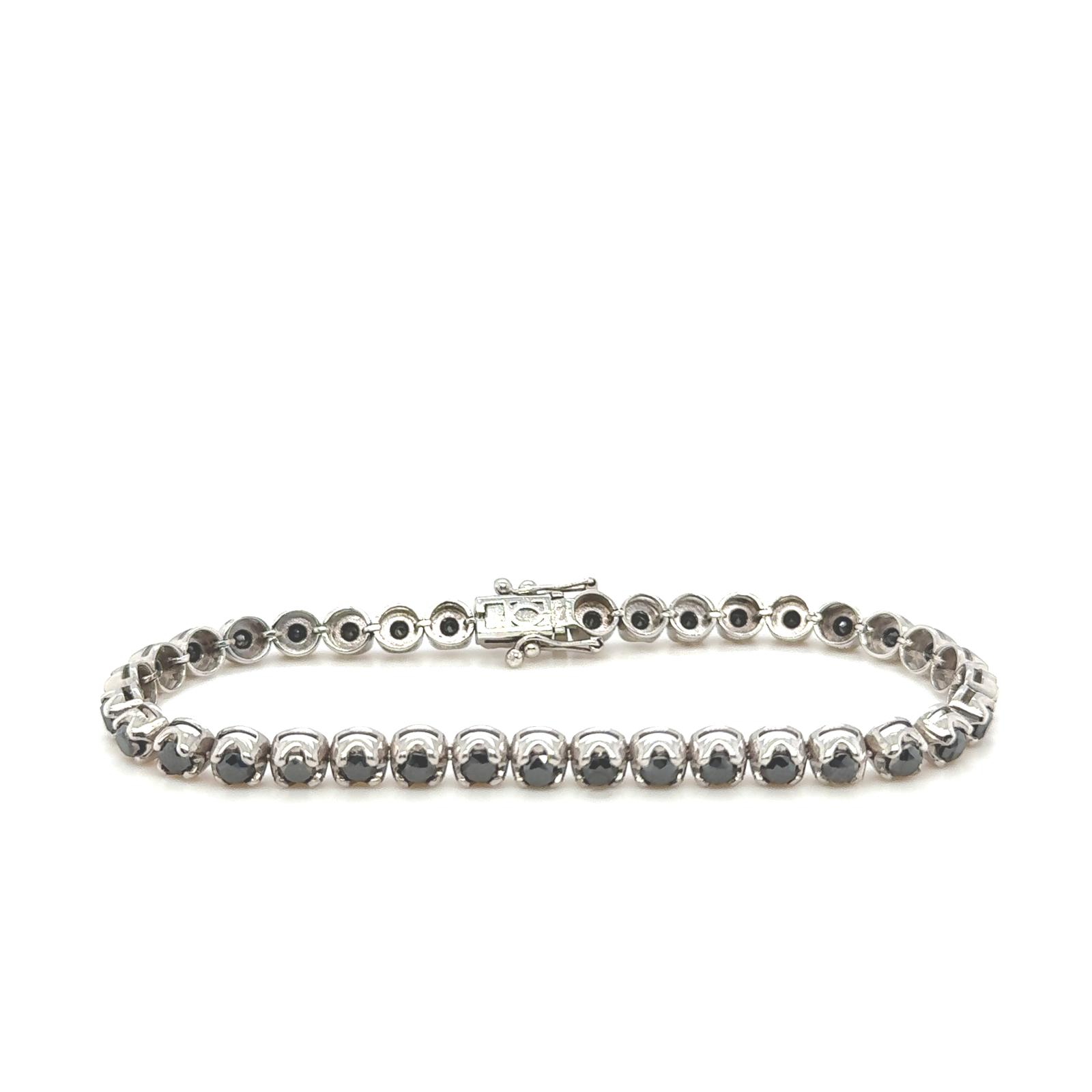 BRACCIALETTO IN ORO BIANCO 14K 13.47 GR TIPO TENNIS CON DIAMANTI NATURALI 7.20 CARATI COLORE FANCY BLACK 18CM CERTIFICATO GEMMOLOGICO MAROZ DIAMONDS LTD MEMBRO ISRAEL DIAMOND EXCHANGE - DH-B508