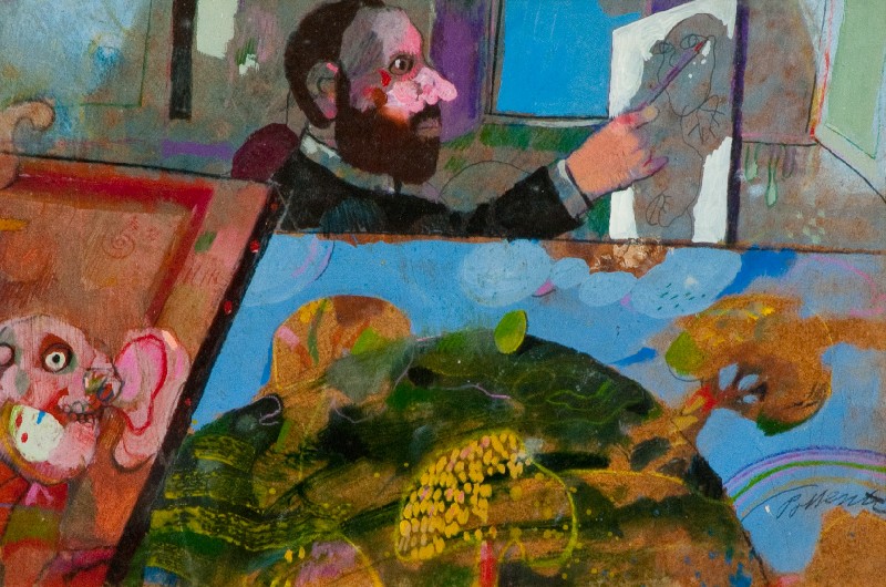 Antonio Possenti (Lucca 1933) UN PITTORE Olio su faesite, cm. 20x29,5 Firmato...