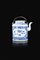 Teiera in porcallana bianca e blu entro contenitore in vimini, Cina, dinastia Qing XIX Sec.