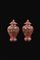 Coppia di vasetti in lacca a tre colori con coperchio e decori di personaggi in giardino, Cina dinastia Qing, XVIII Sec.