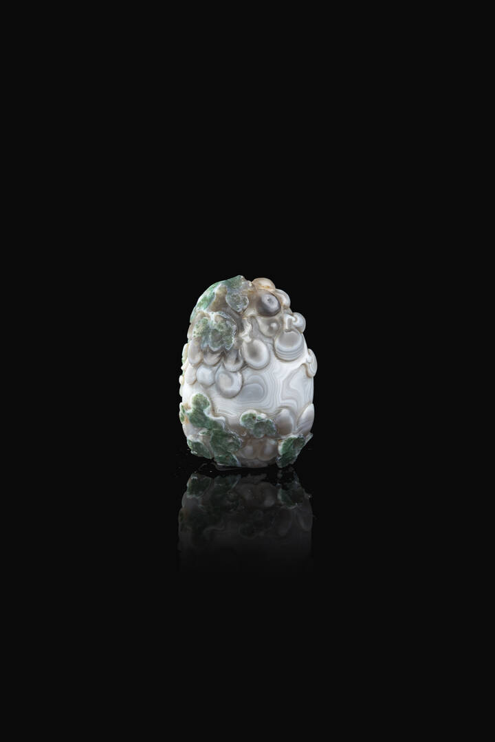 Snuff bottle in agata intarsiata a decori vegetali, Cina, dinastia Qing, XIX Sec.