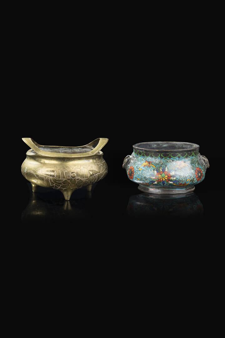 Due incensieri, uno in bronzo e uno cloisonné, Cina, Repubblica XX Sec.