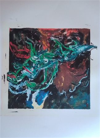MARIO SCHIFANO (1934-1998) Litografia a 18 Colori CM 70X50 Carta Magnani Pescia Titolo -Dinosauri Raptor- Firma e Tiratura a Matita al Fronte, Timbro a Secco, al Retro N. Serie della Fondazione Schifano