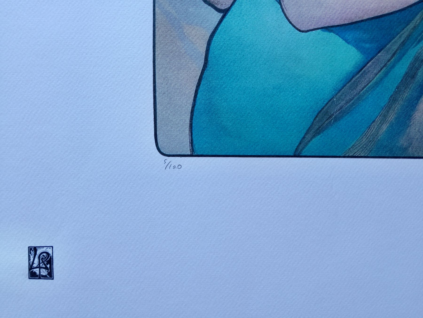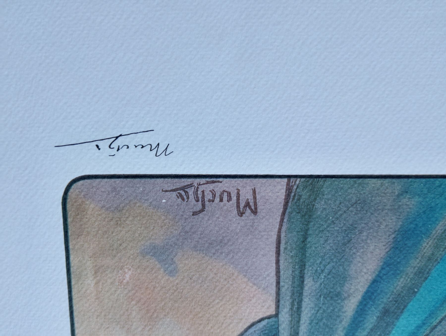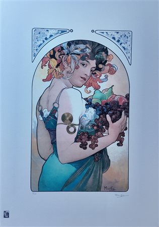 ALPHONSE MUCHA (1860-1939) Litografia CM 70X50 Titolo -Donna e Natura Morta- al Fronte Firma in Lastra in Basso a Destra e Tiratura a Matita in Basso a Sinistra, per Autentica Firma della Fondazione in Basso a Destra, Timbro a Secco e Certificato Accluso