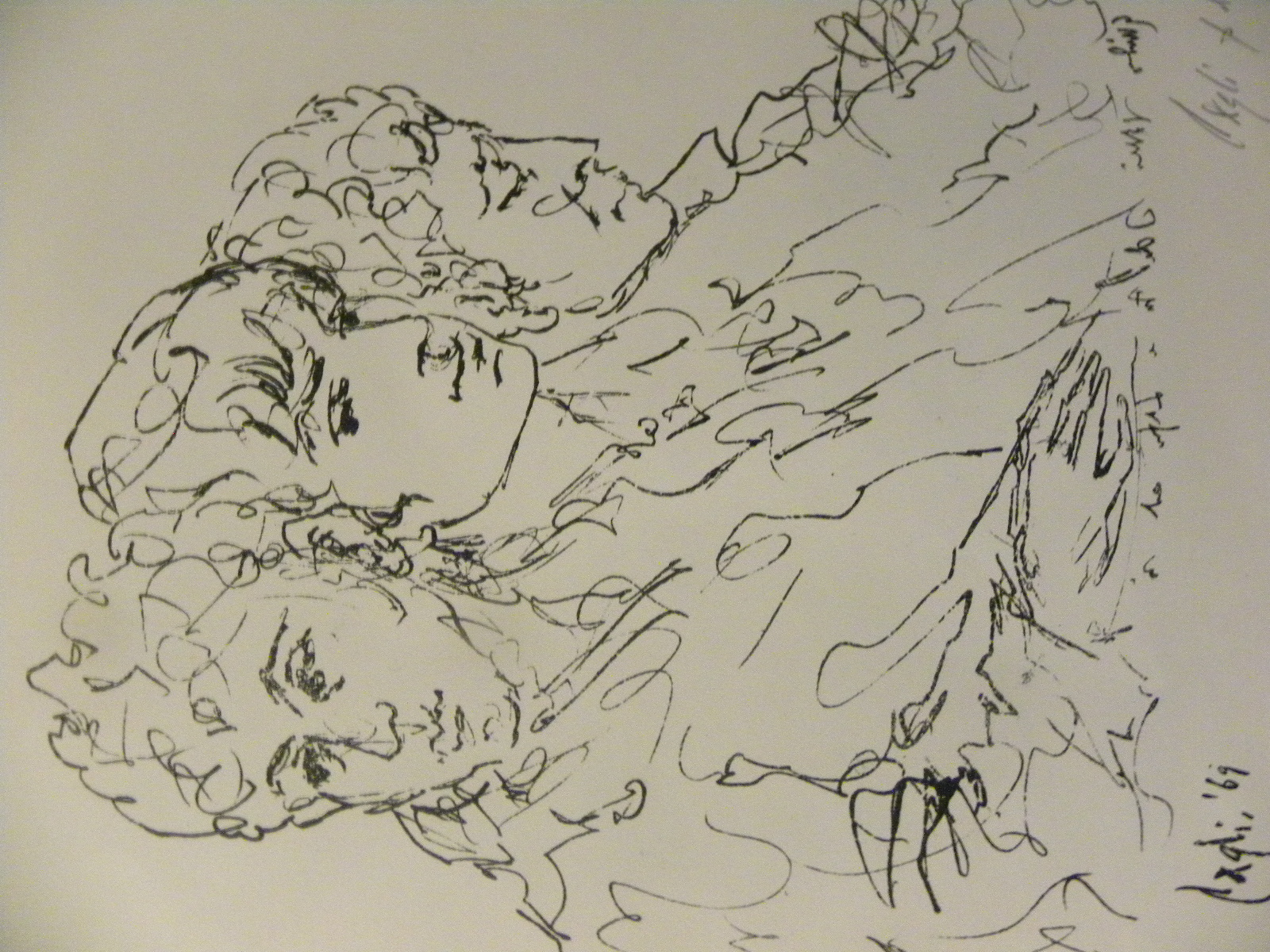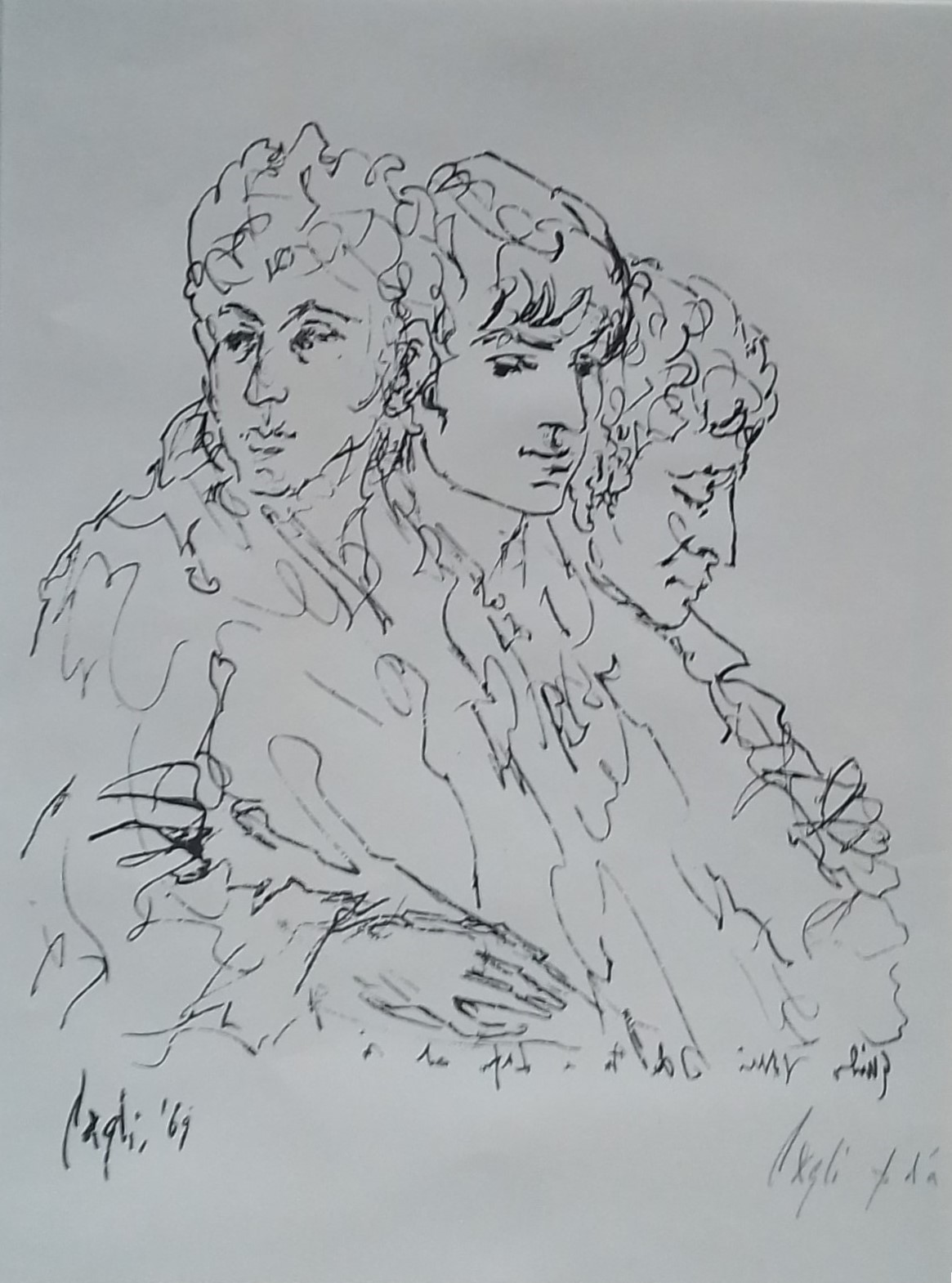 CORRADO CAGLI(1910-1976) Rara Acquaforte 1969 Titolo -TRE VOLTI- CM 50X70...