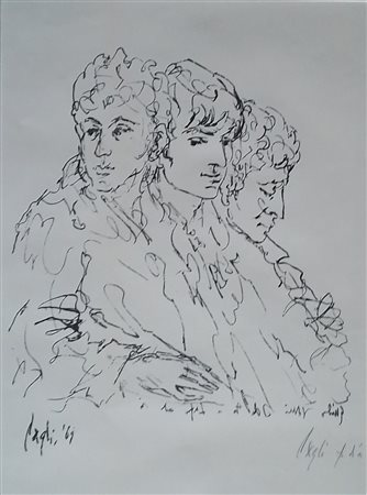 CORRADO CAGLI(1910-1976) Rara Acquaforte 1969 Titolo -TRE VOLTI- CM 50X70 Firma al Fronte a Matita in Basso a Sinistra e Tiratura a Destra P.D.A. Senza Cornice
