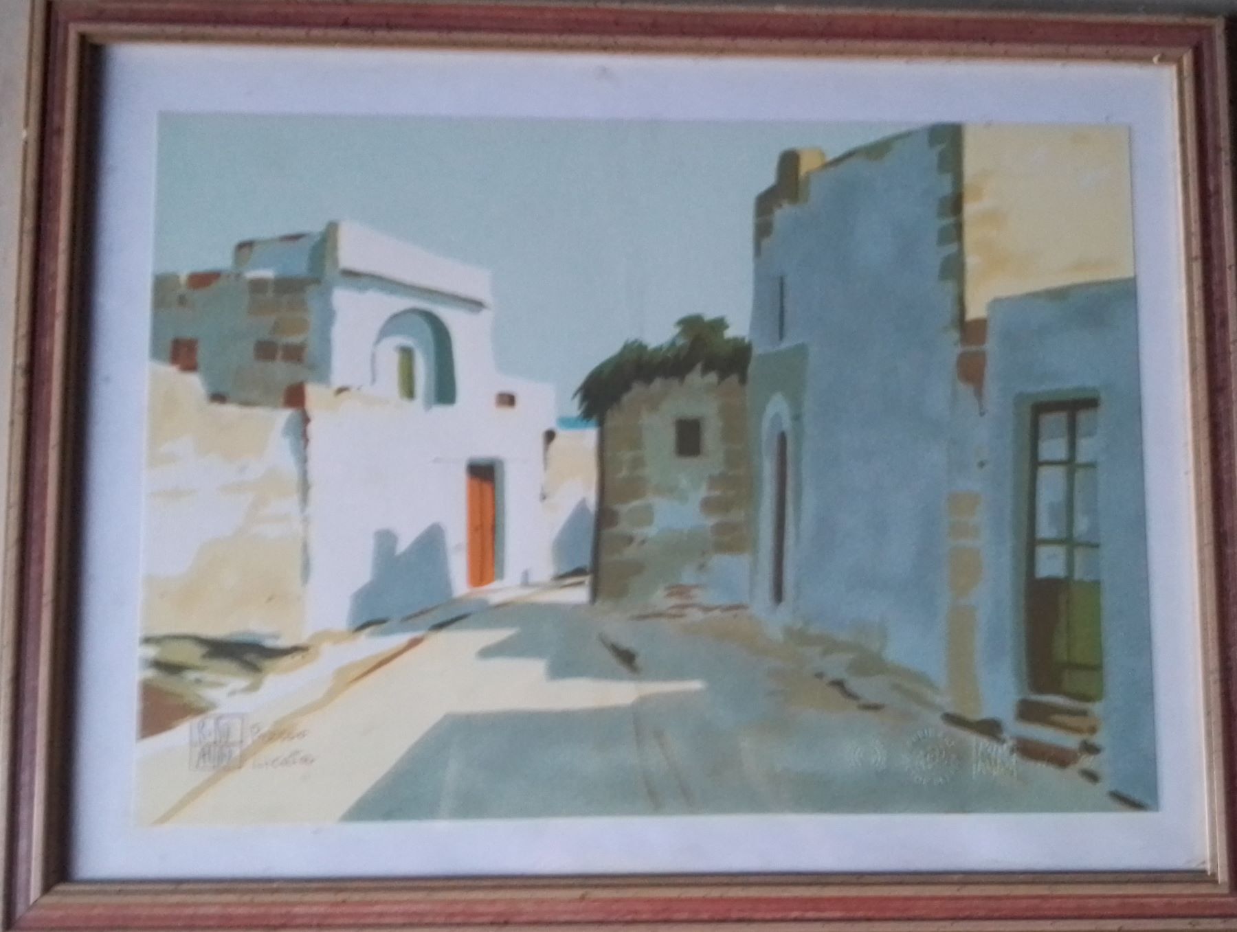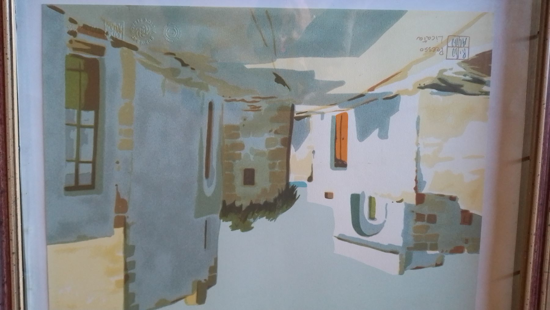 ALDO RISO (1927-2008) Serigrafia Colorata a Mano Titolo -Presso Licata- 1992 CM 35X45, Firma al Fronte a Matita e Timbro, Certificato e Data al Retro Con Cornice