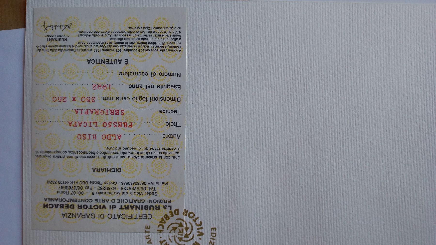 ALDO RISO (1927-2008) Serigrafia Colorata a Mano Titolo -Presso Licata- 1992...