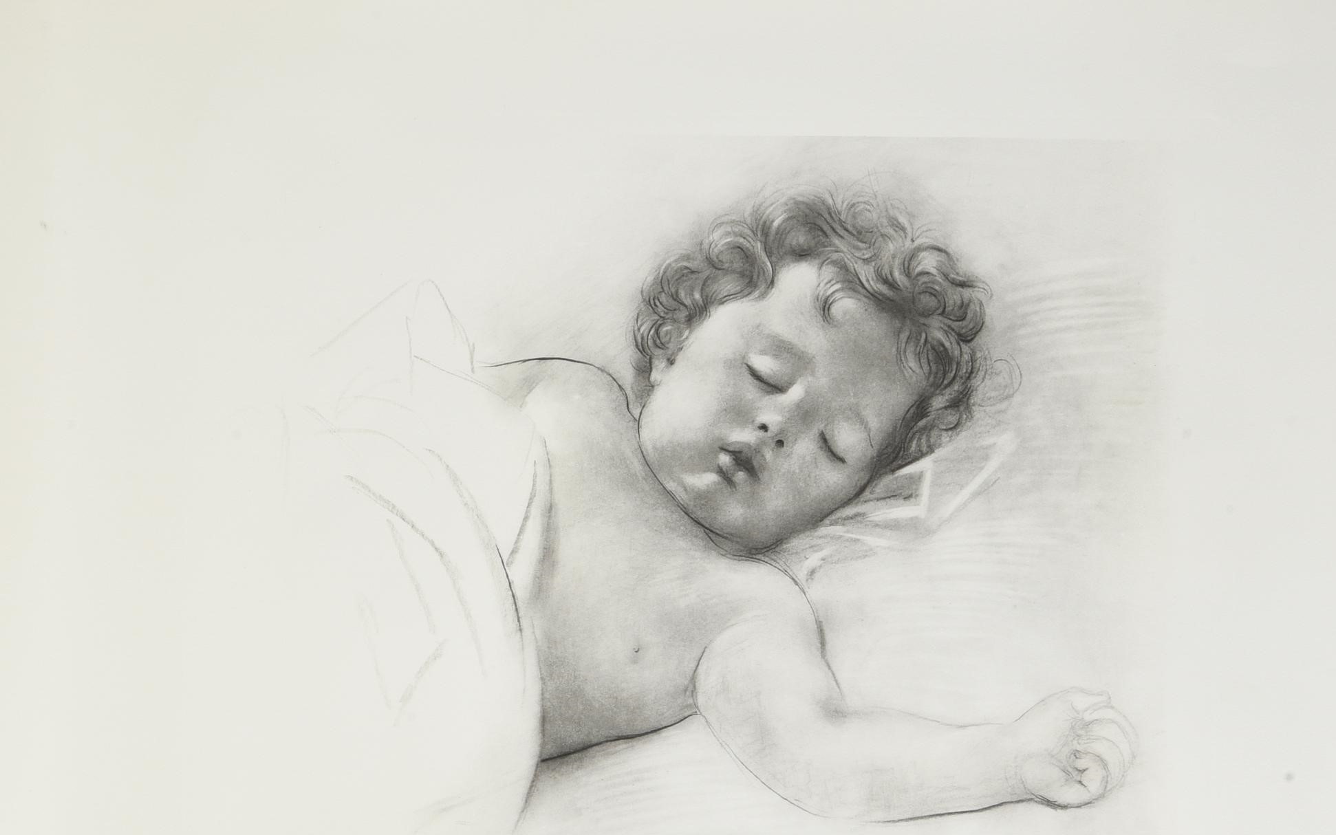 FRANCESCO MESSINA (1900-1995) Litografia su Cartoncino CM 65X45 Titolo -Bimbo Sognante- Firma e Tiratura a Mano al Fronte Senza Cornice