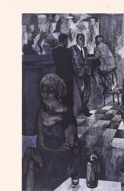 ALBERTO SUGHI (1928-2012) Acquatinta-Acquaforte CM 80X65 Titolo -Interno di un Bar- Firma e Numerazione a Matita al Fronte Certificato Accluso