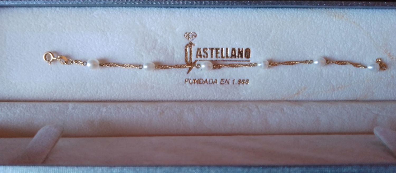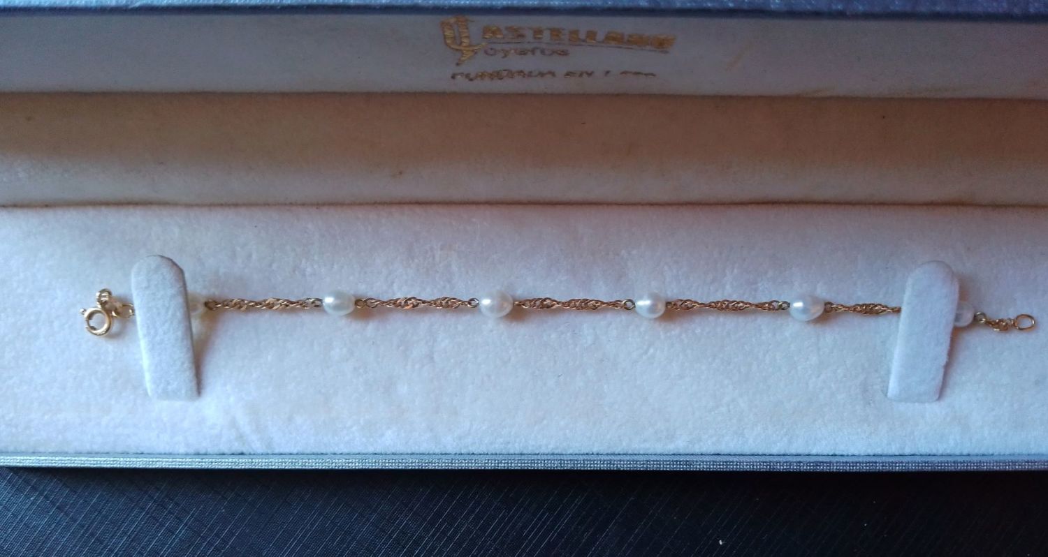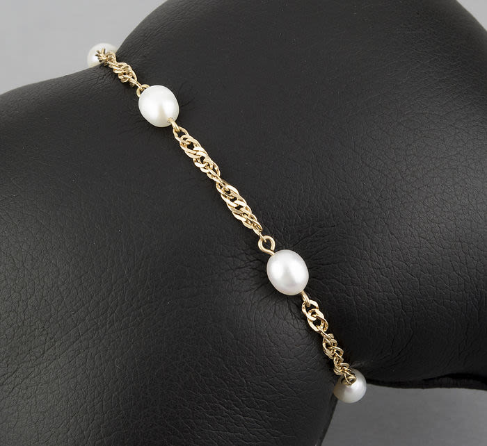 VINTAGE- Anni 60-70 Bracciale in Oro 18 KT (750) Con Originali Perle Akoia di Acqua Salata da 6 MM- Lunghezza CM 18 -PESO GR 2,50- In Ottime Condizioni