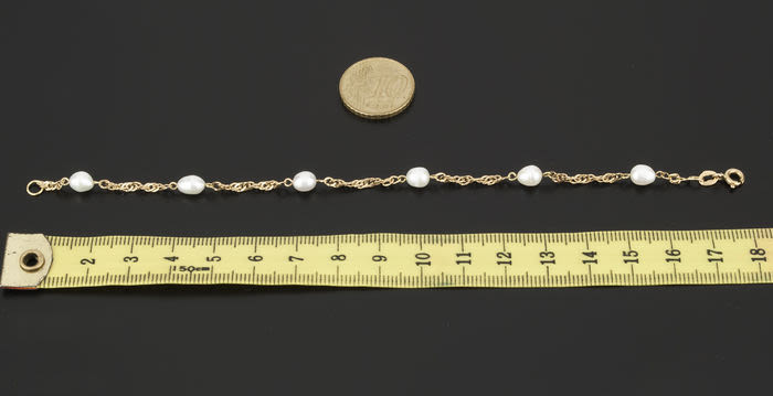 VINTAGE- Anni 60-70 Bracciale in Oro 18 KT (750) Con Originali Perle Akoia di...