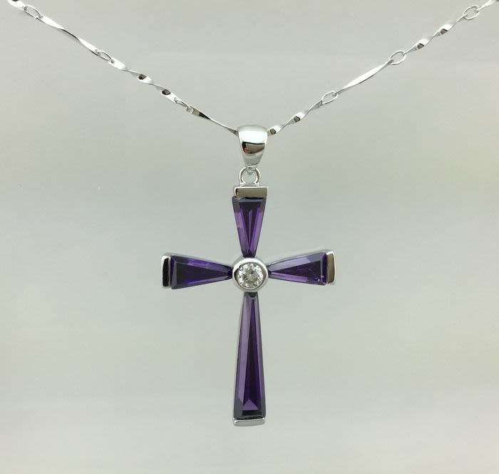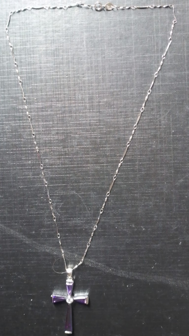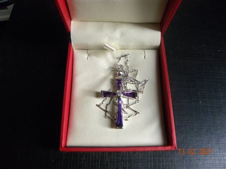 VINTAGE- ANNI 70 Collana in Argento 925 CM 44XMM 2,5 con Croce in Argento e Madreperla Viola MM 37X27 Totale GR 6,5 , in Ottime Condizioni