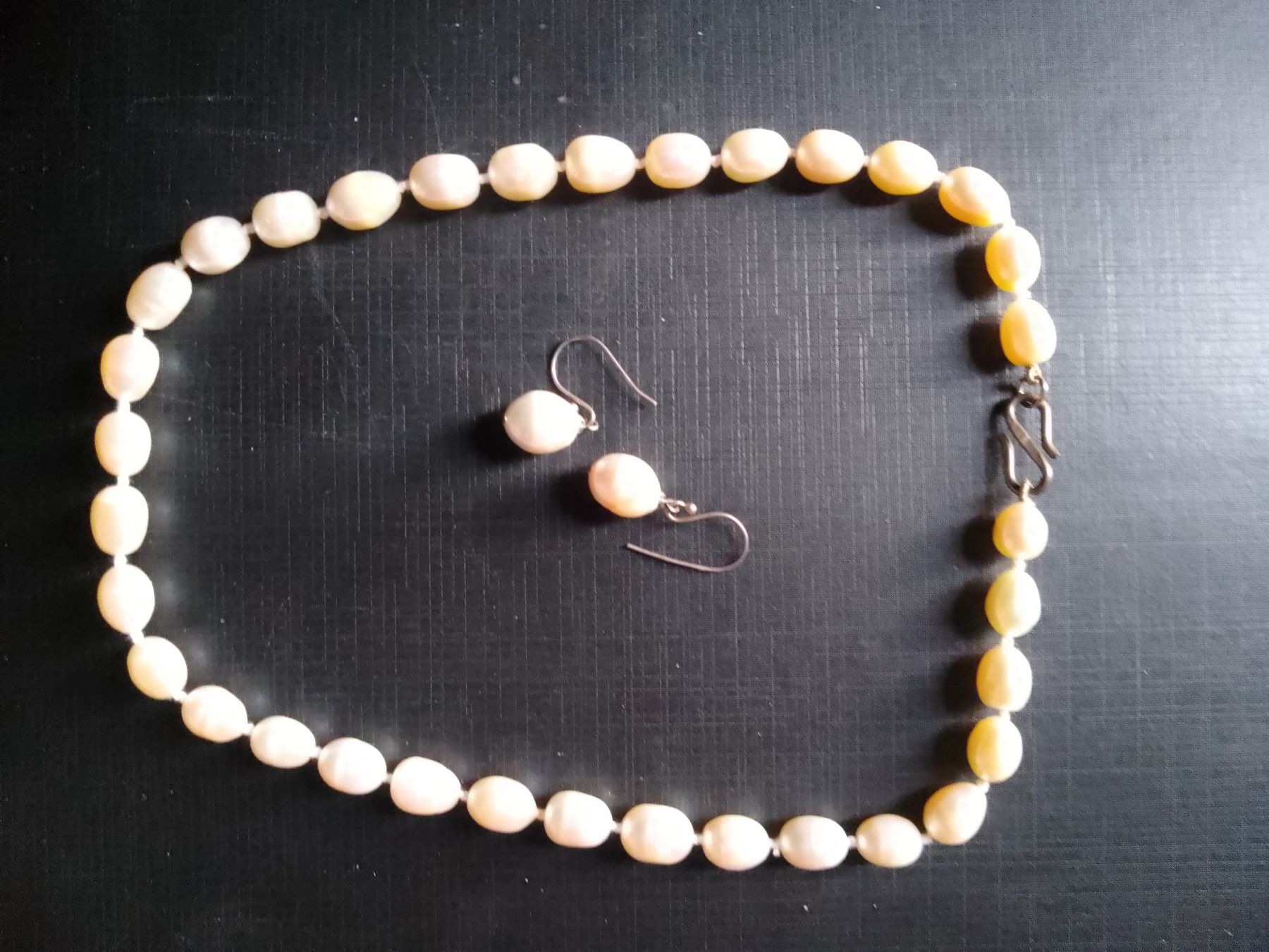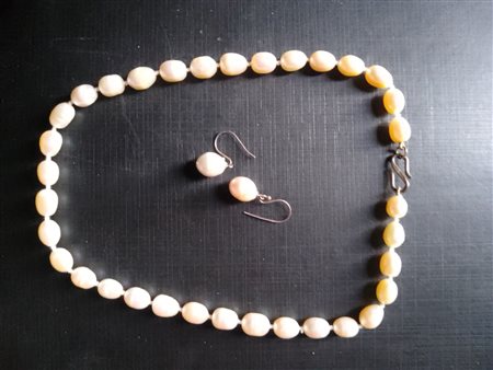 VINTAGE - Anni 60 Collana di Perle d'Acqua Dolce, Girocollo da CM 45 e Perle da CM 1 con Orecchini da CM 1 Chiusura in Argento 835
