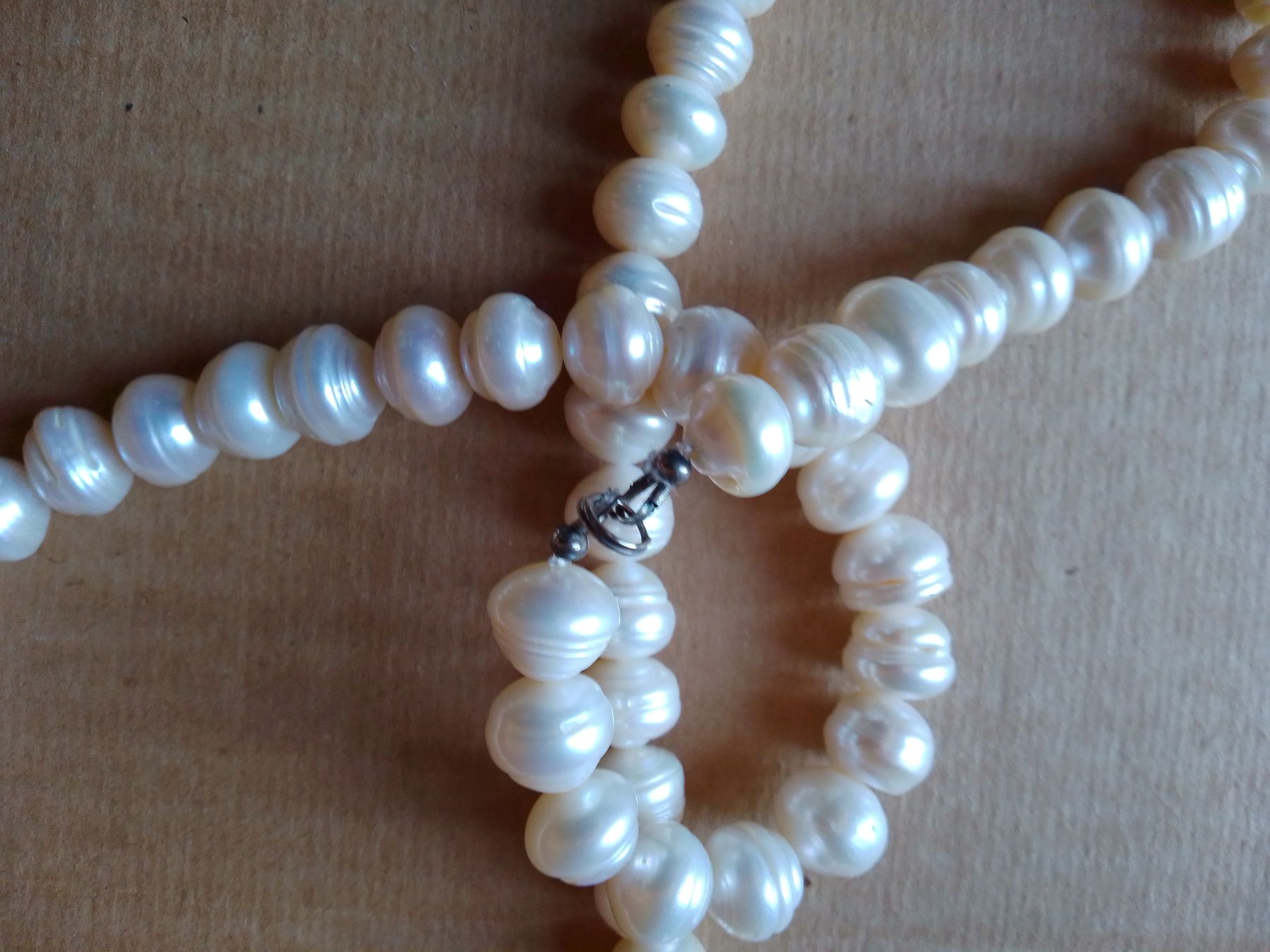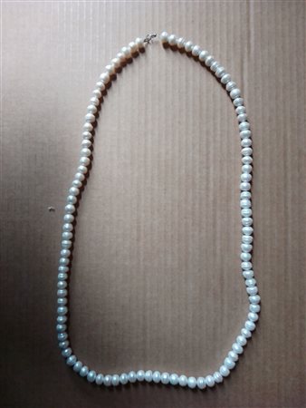 VINTAGE Anni 80 Collana di Perle Coltivate di Acqua Dolce CM 92 con Perle di CM 1 Chiusura in Argento 835