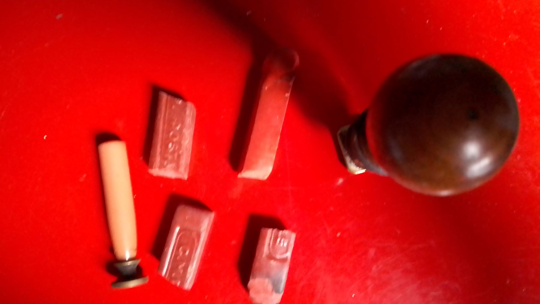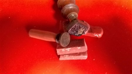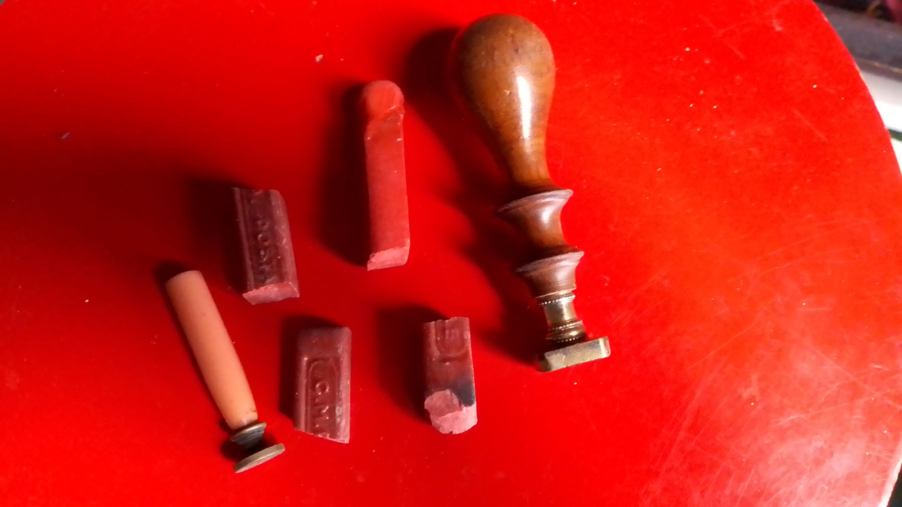 VINTAGE Anni 60, Vecchi Timbri Originali, Uno delle Poste Italiane Altro anonimo, con 4 Pezzi di Ceralacca Usati du cui uno della Posta